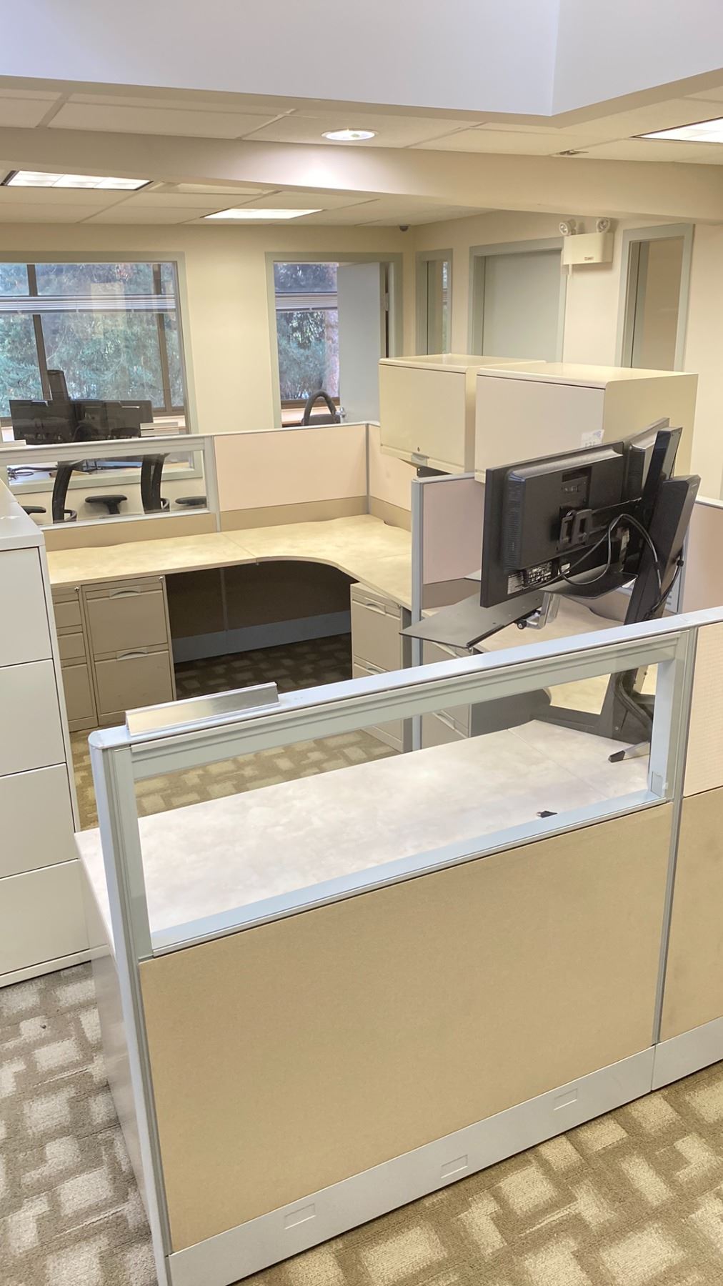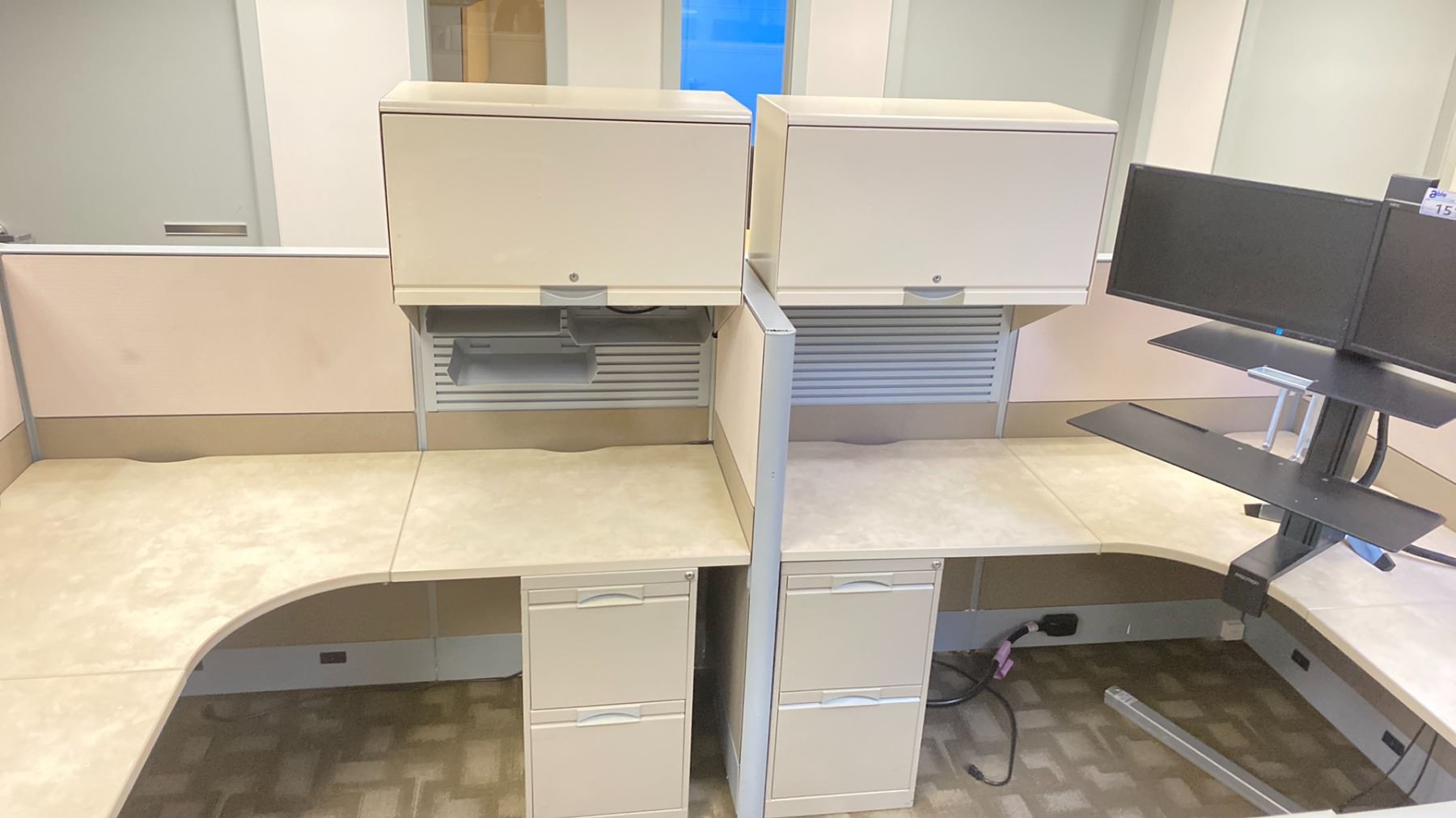 2 DESKS WITH CUBICLE WALLS OFFICE WORK SPACE SYSTEM
