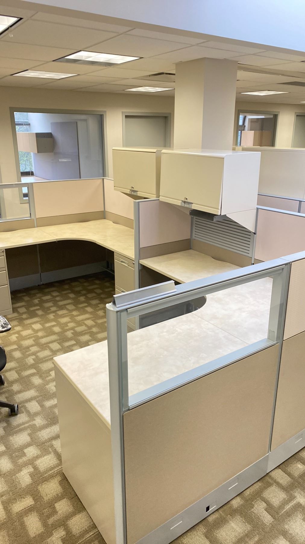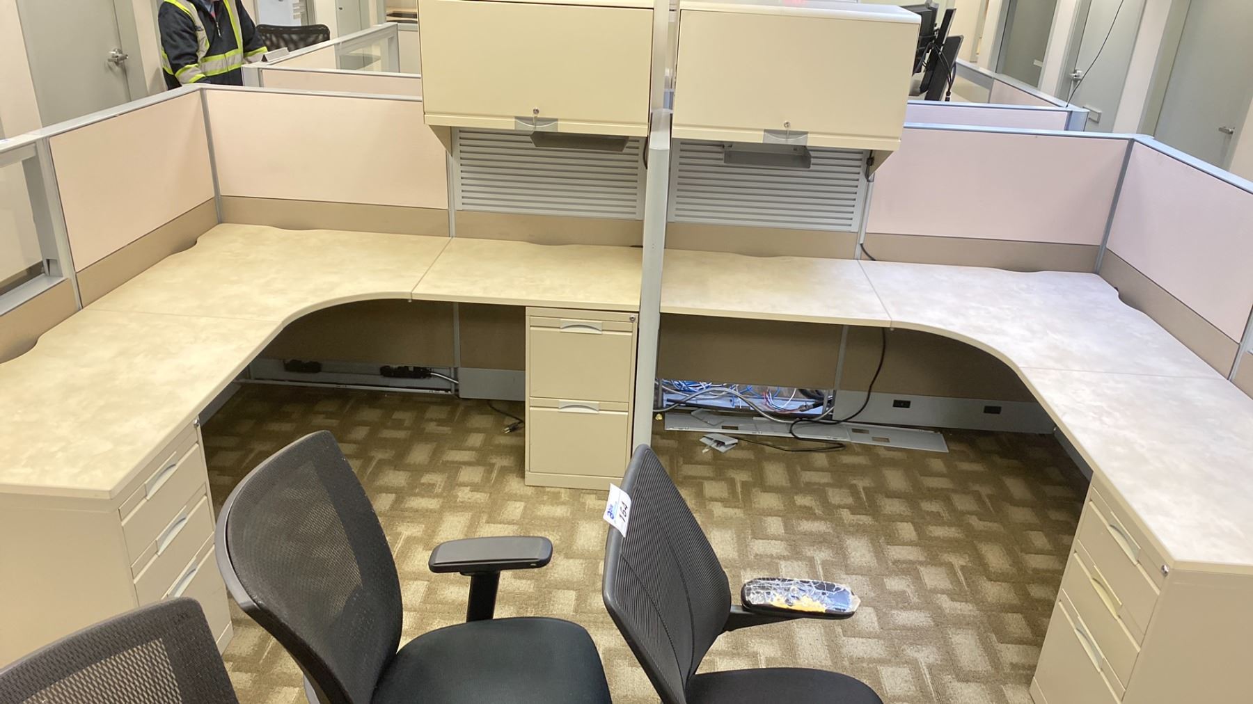 2 DESKS WITH CUBICLE WALLS OFFICE WORK SPACE SYSTEM