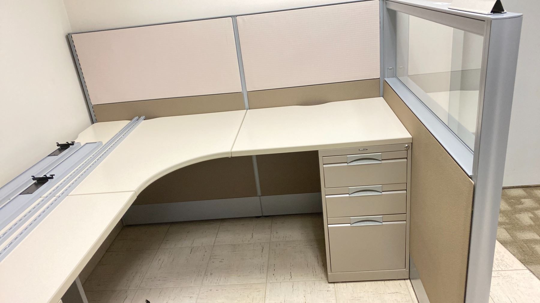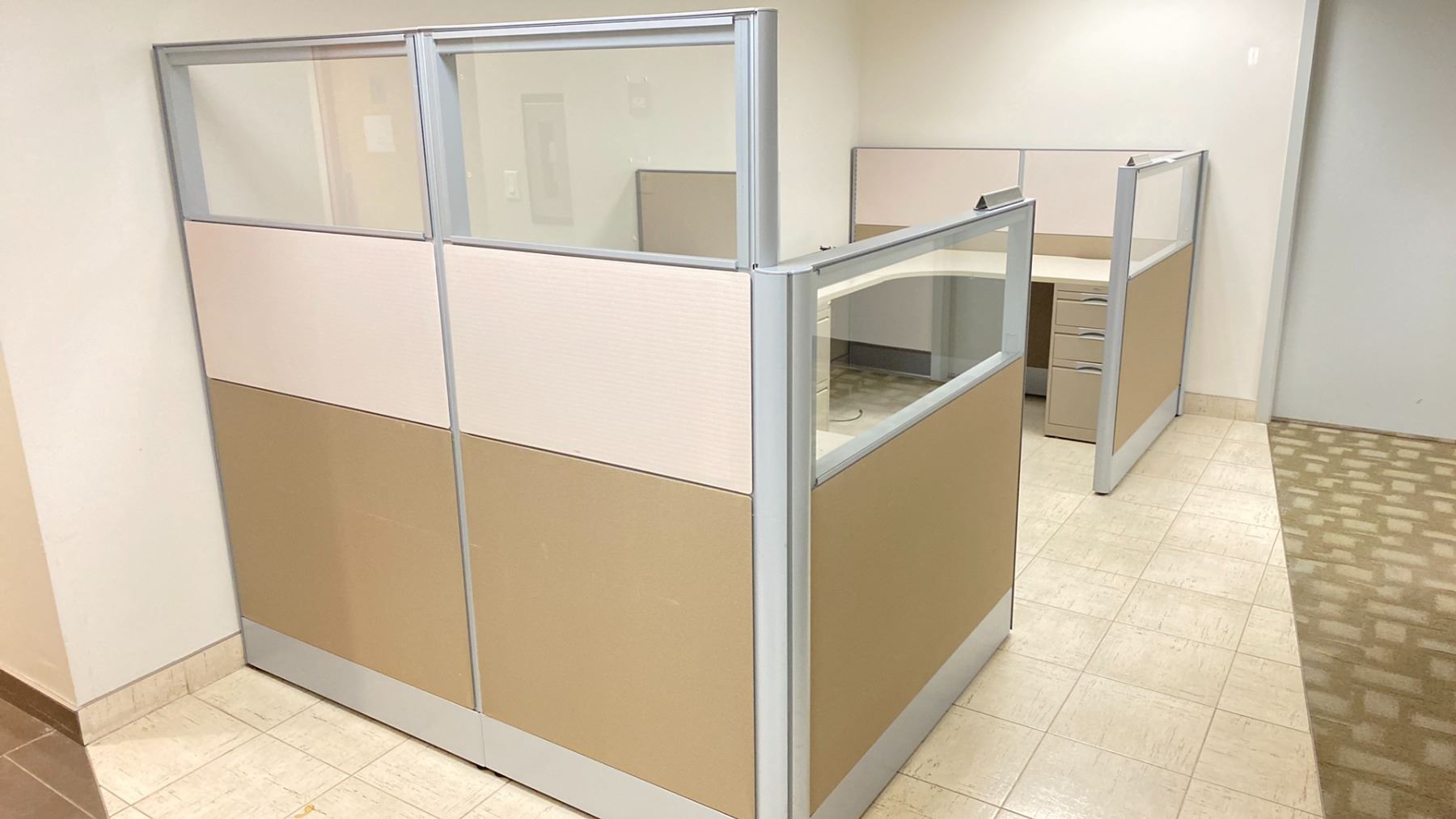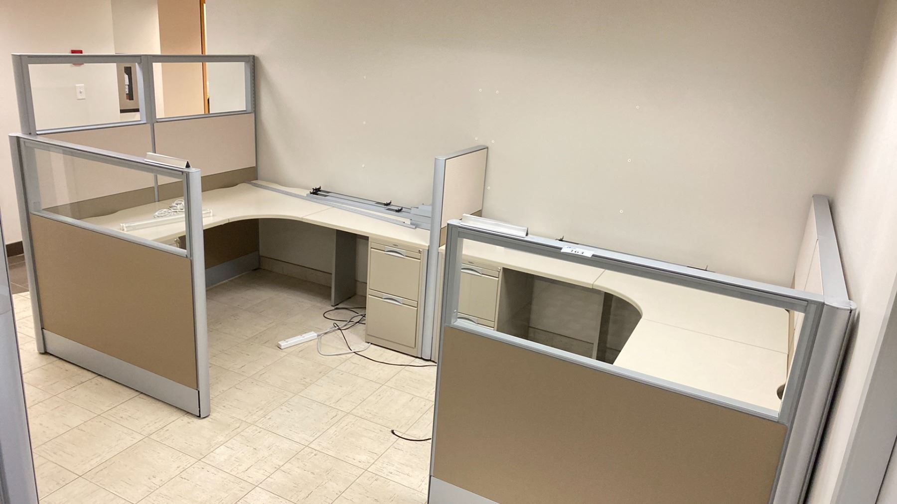 2 DESKS WITH CUBICLE WALLS OFFICE WORK SPACE SYSTEM