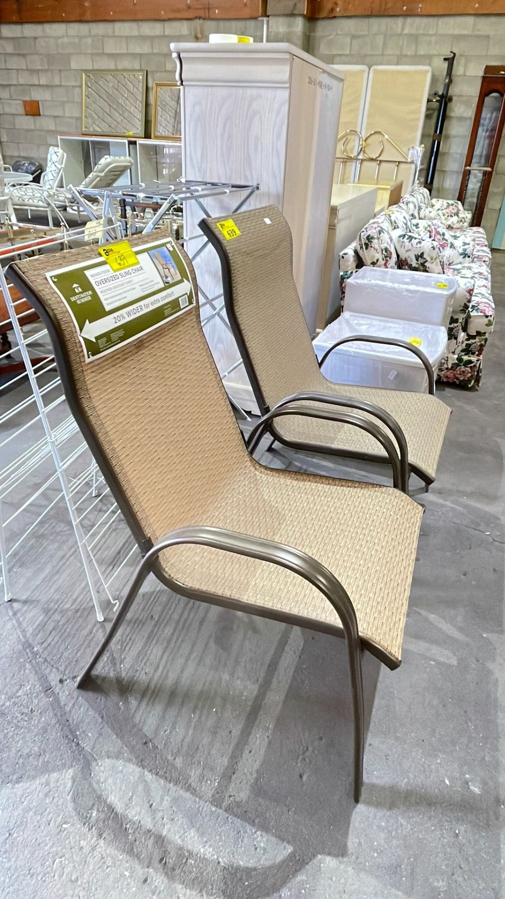 2 DESTINATION SUMMER OUTDOOR OVERSIZE SLING CHAIRS WITH WEATHER-RESISTANT FABRIC