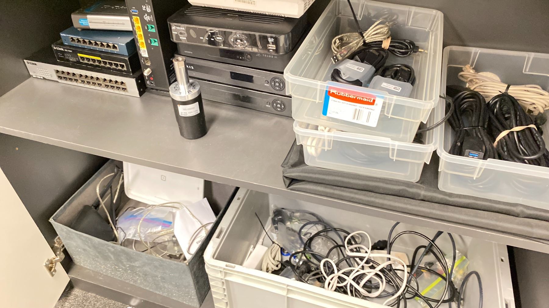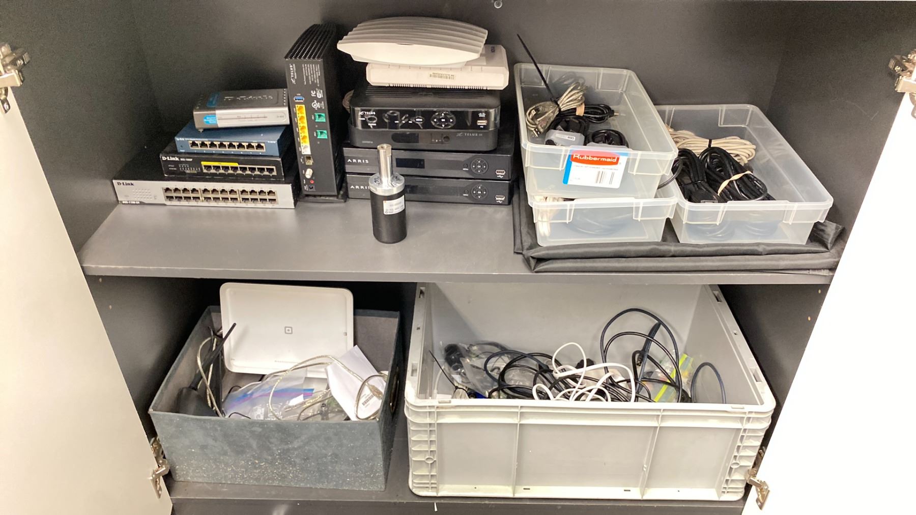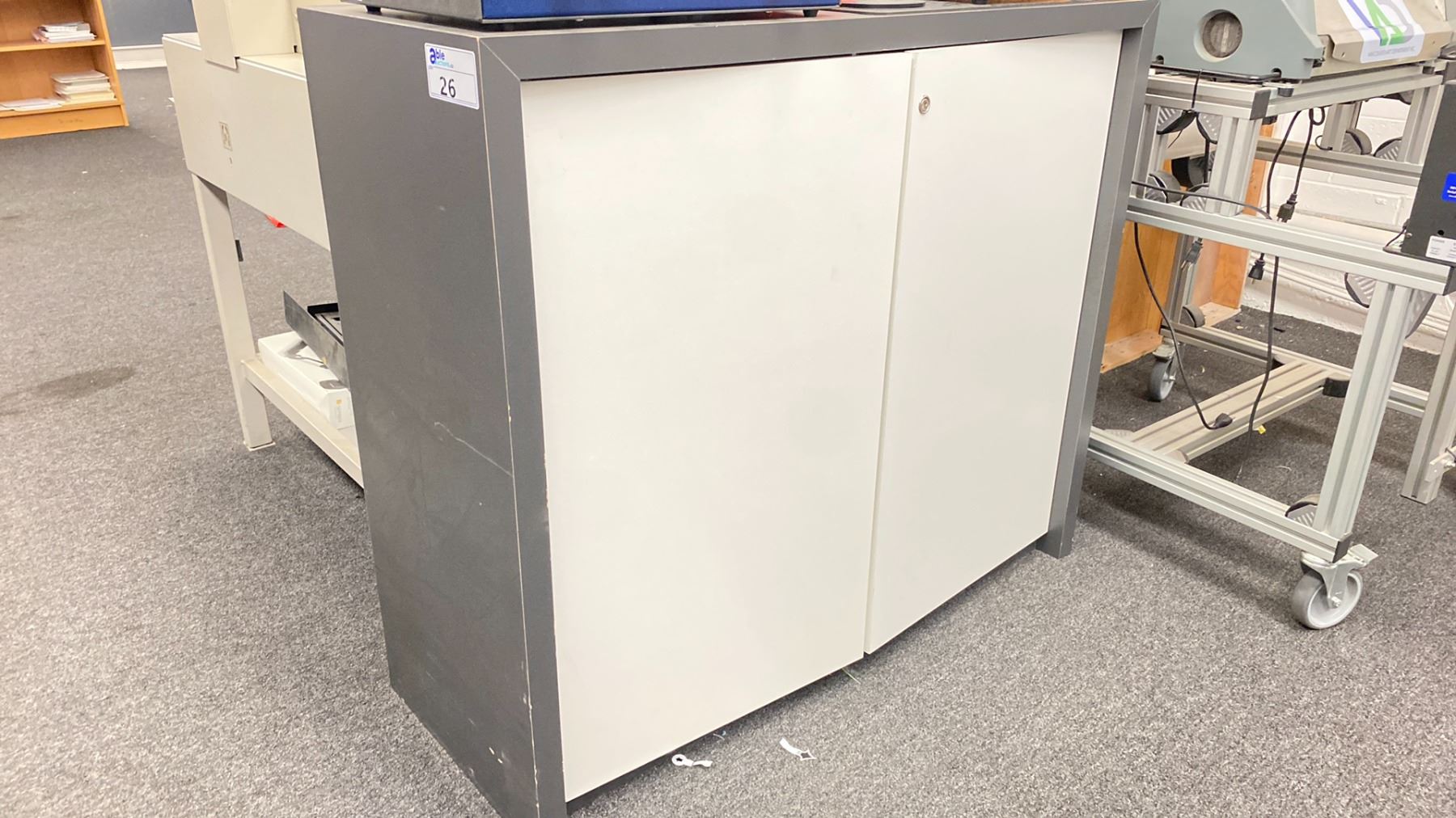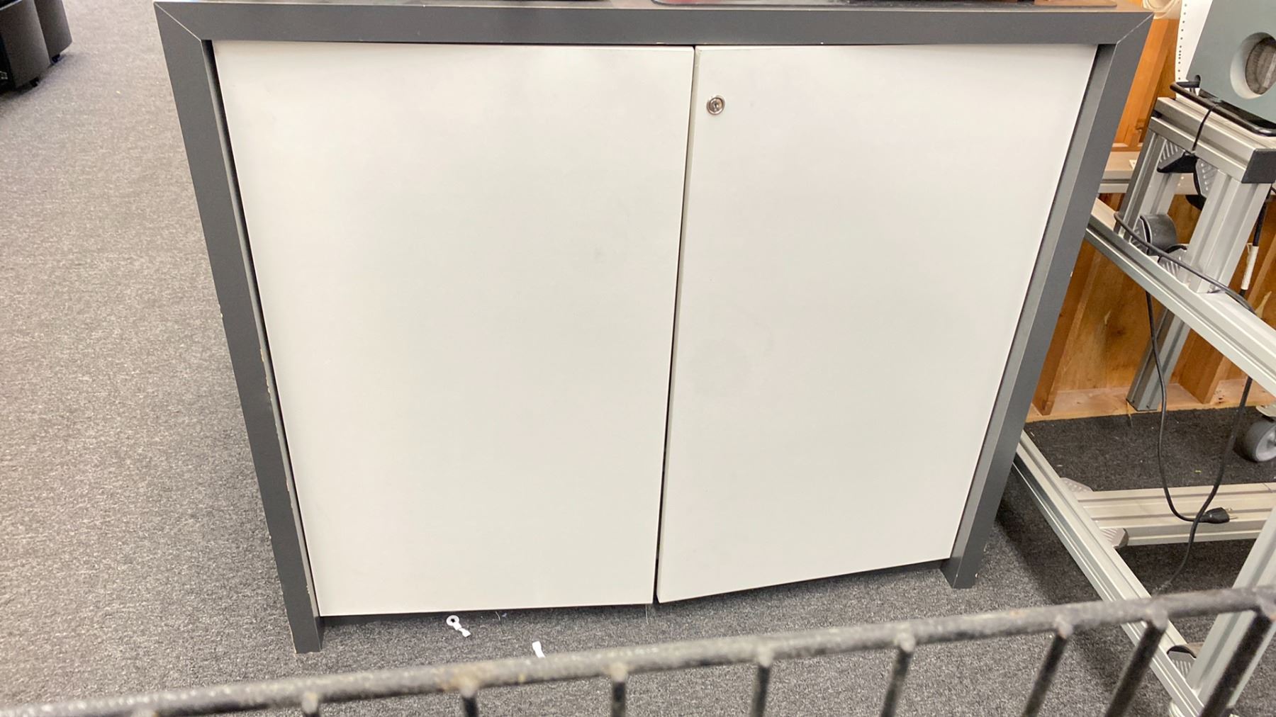 2 DOOR CABINET WITH ASSORTED INTERIOR CONTENTS 45.5"L X 18"W X 39.5"H *ITEM LOCATED OFF SITE IN VANCOUVER*