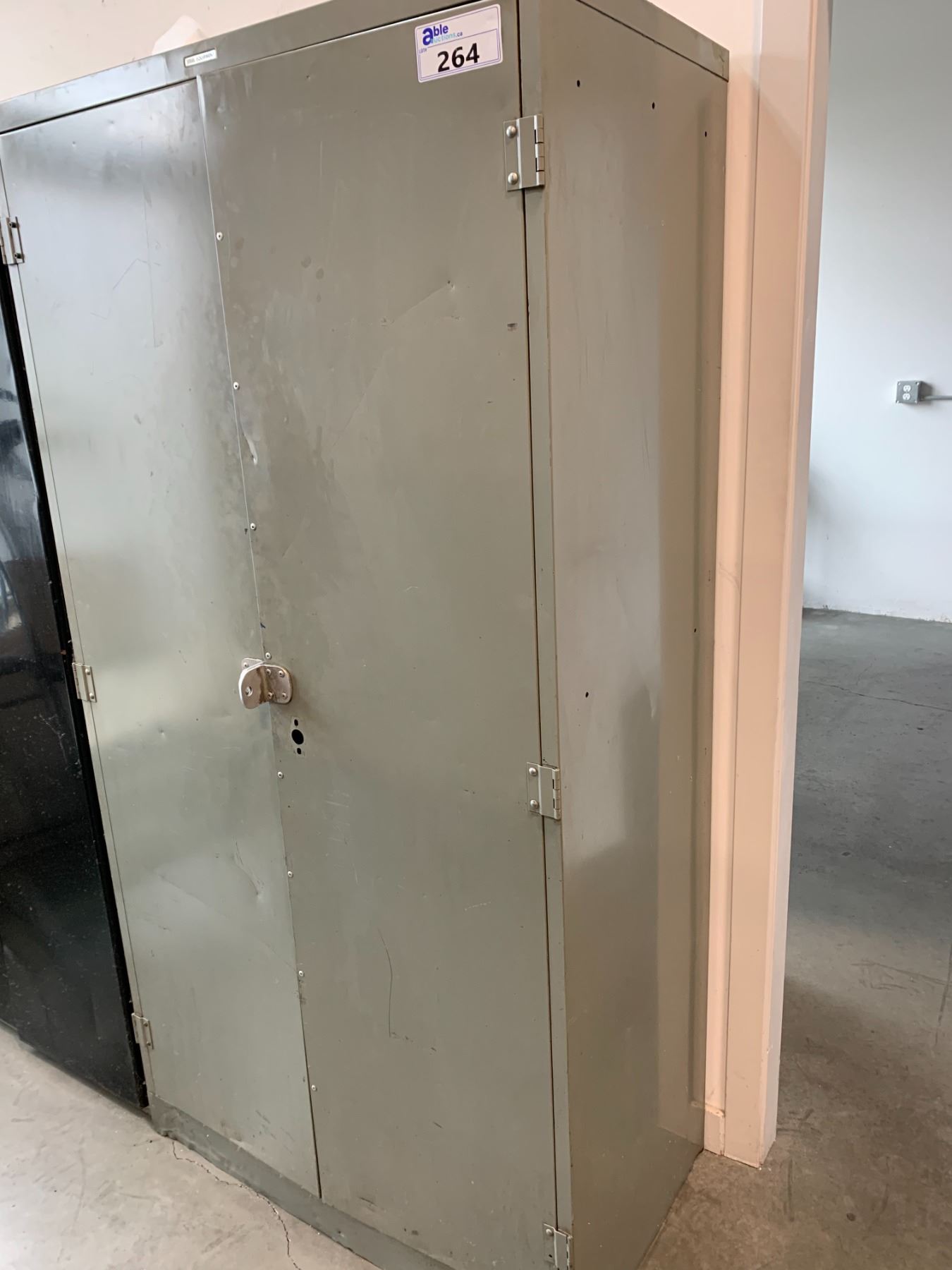 2 DOOR METAL STORAGE CABINET AND CONTENTS-SHOP SUPPLIES, LUBRICANTS AND MORE