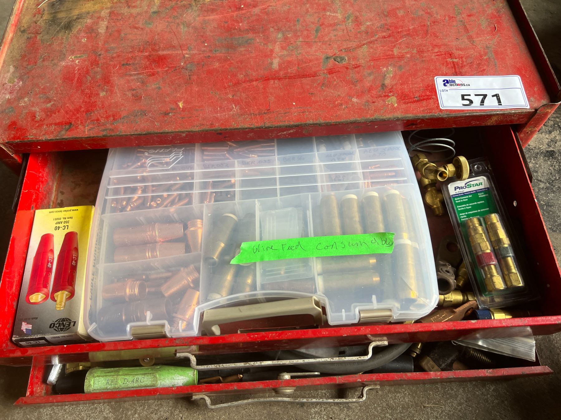 2 DRAWER TOOL BOX WITH WIRE FEED CONSUMABLES AND SPARE PARTS