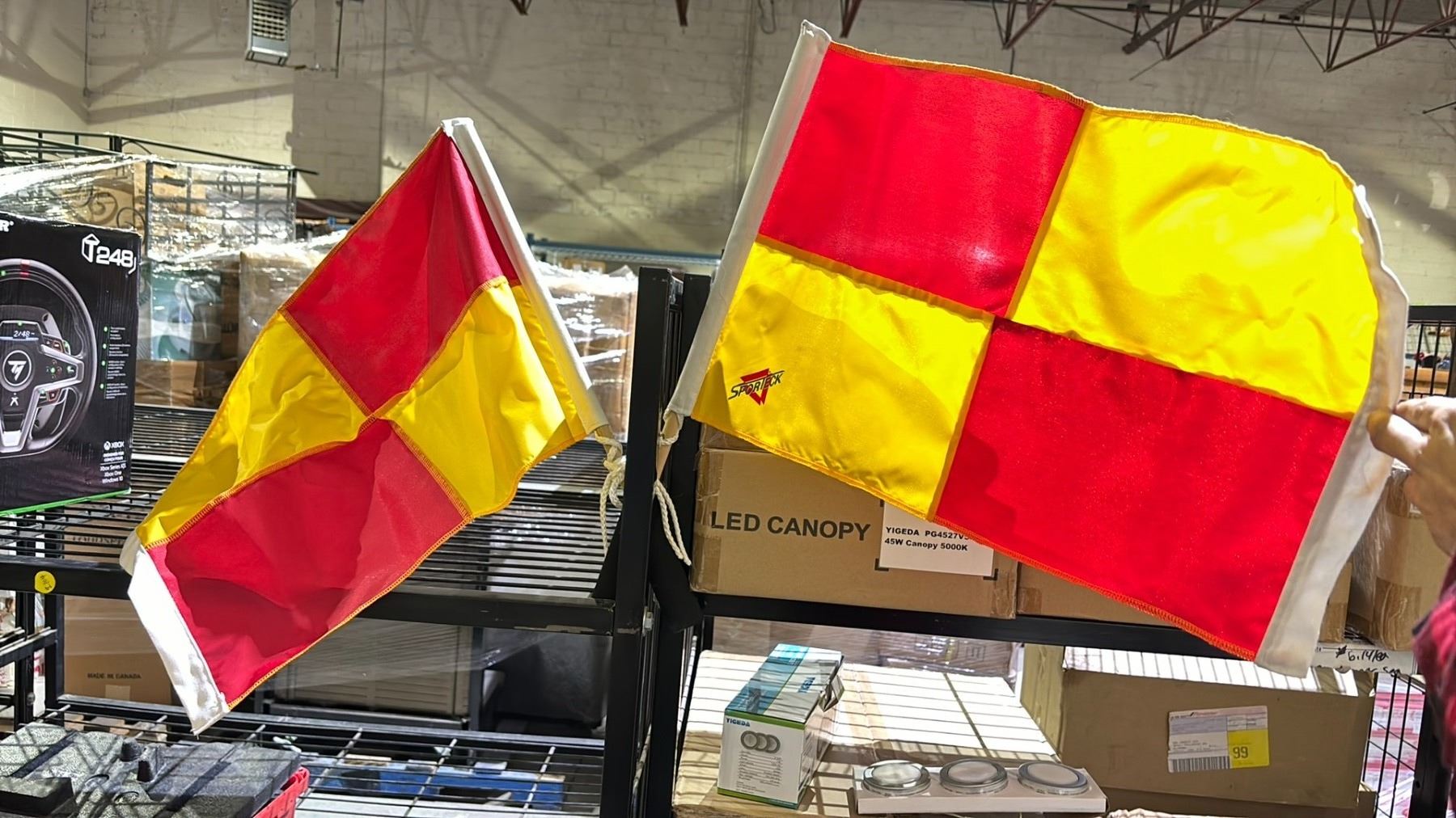 2 EA. SOCCER LINESMAN FLAGS WITH FOAM PADDED HANDLES. LIKE NEW CONDITION.