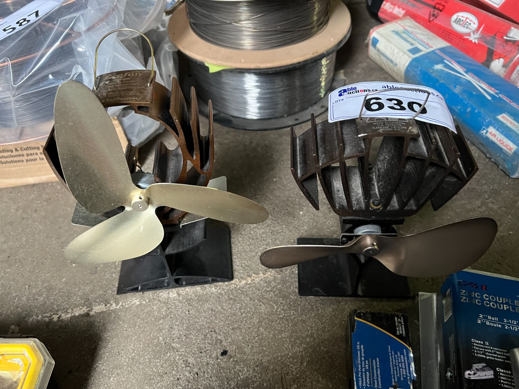 2 ECO FANS. TYPICALLY USED WITH WOOD STOVES, THEY ARE POWERED BY SEEBECK EFFECT USING THERMOCOUPLER TECHNOLOGY. NEW THESE FANS SELL FOR $200 EACH