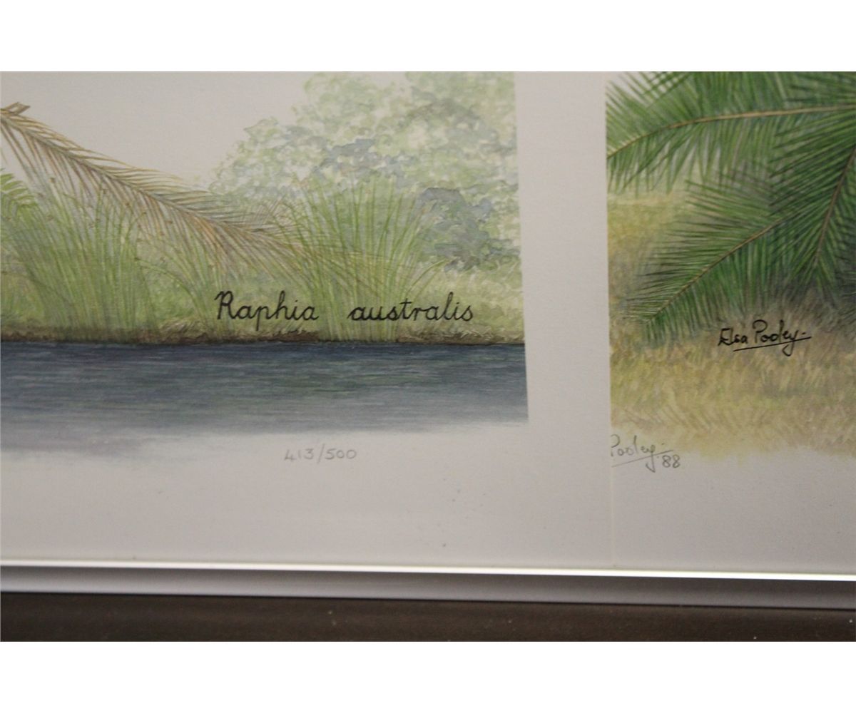 2 ELISA POOLEY, LIMITED EDITION PRINTS "RAPHIA AUSTRALIS" 413/500 AND PHOENIX RECLINATA" 413/500