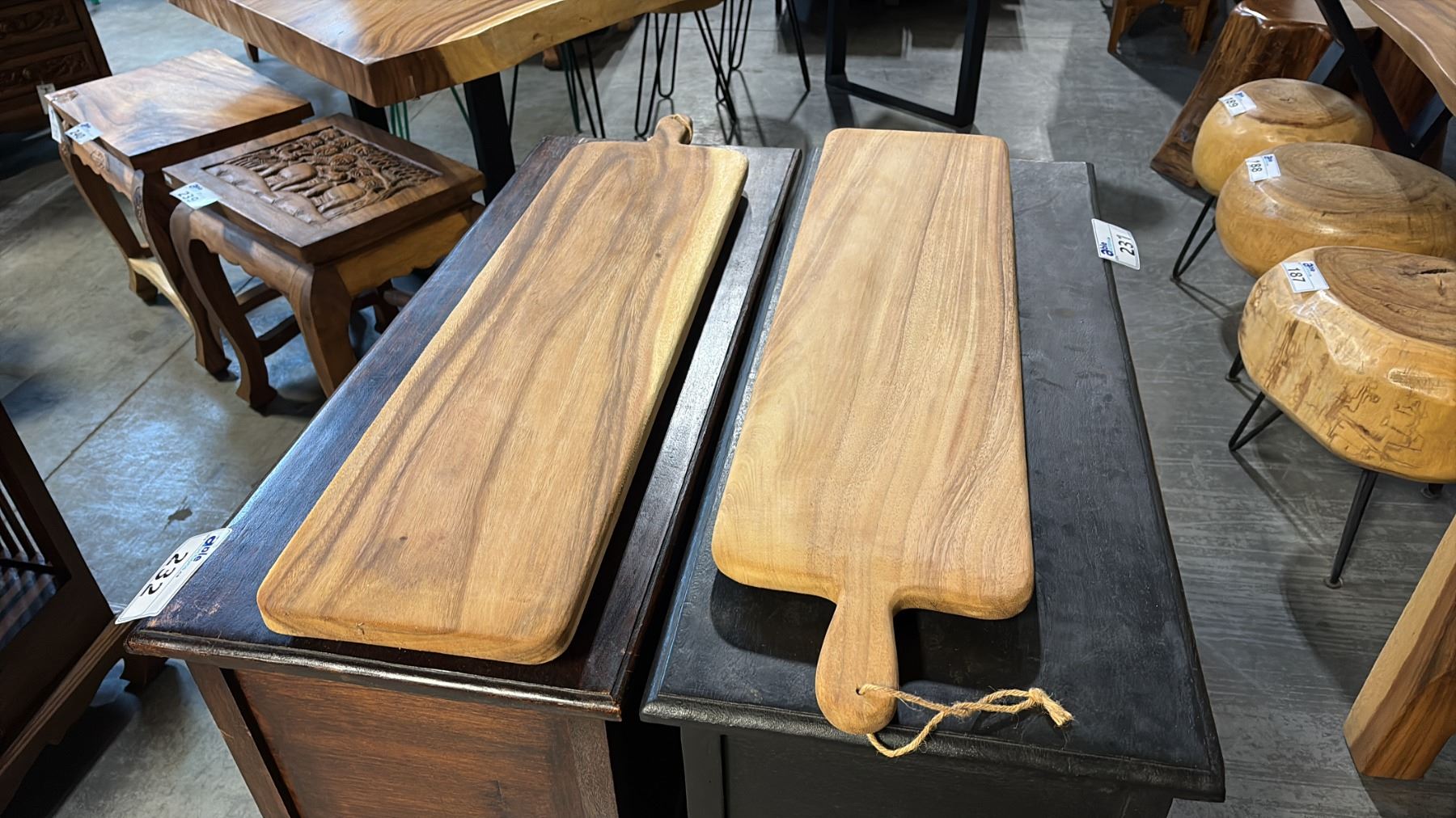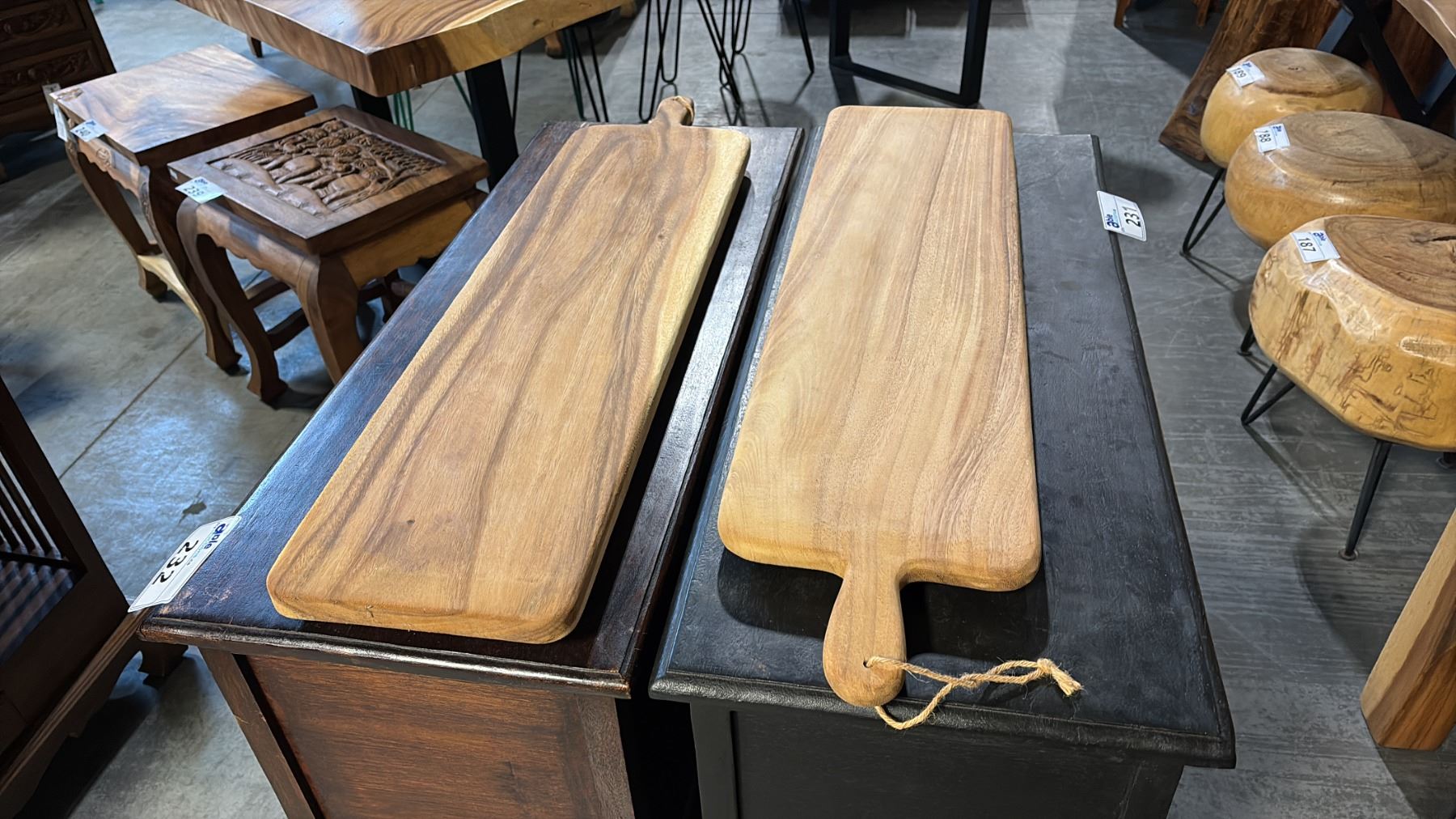 2 EXOTIC WOOD CHARCUTERIE PADDLE BOARDS 31"L