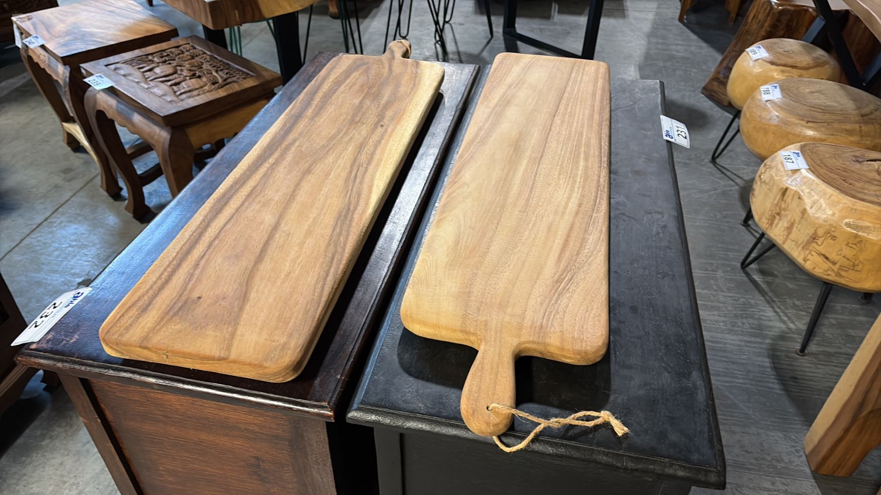 2 EXOTIC WOOD CHARCUTERIE PADDLE BOARDS 31"L