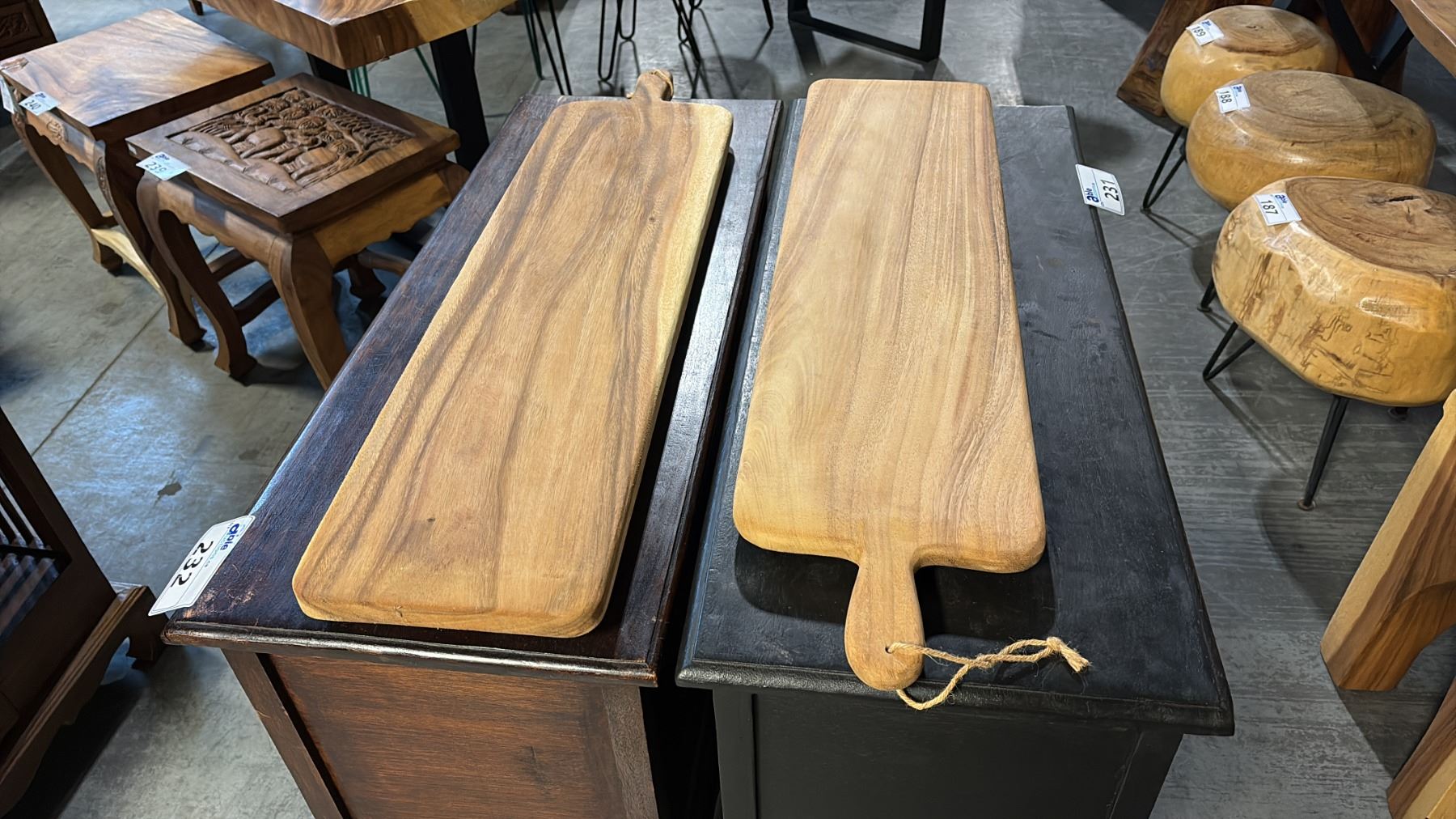 2 EXOTIC WOOD CHARCUTERIE PADDLE BOARDS 32"L