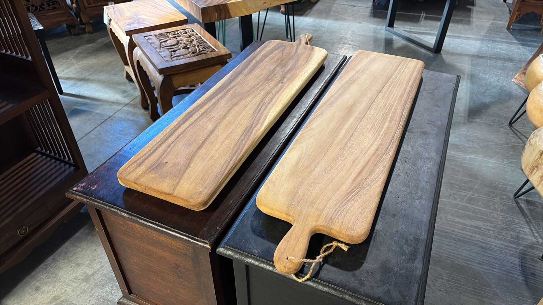 2 EXOTIC WOOD CHARCUTERIE PADDLE BOARDS 39"L