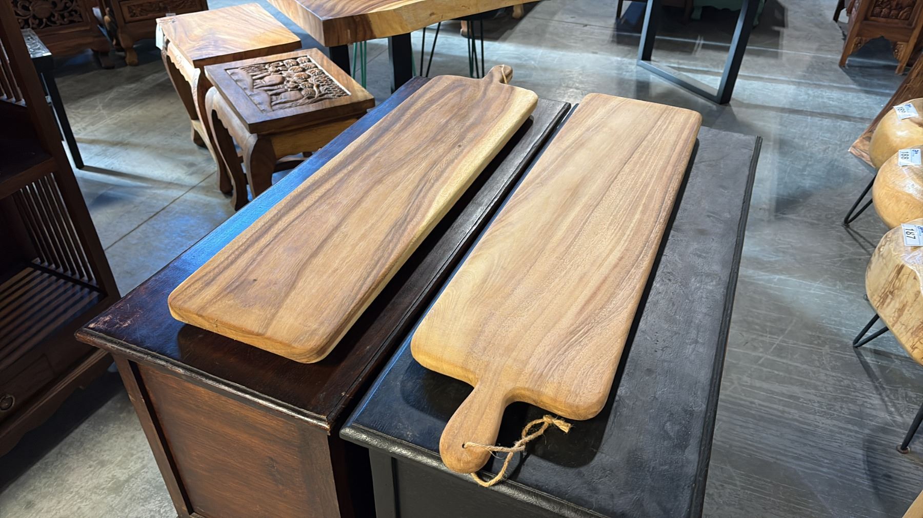 2 EXOTIC WOOD CHARCUTERIE PADDLE BOARDS 39"L