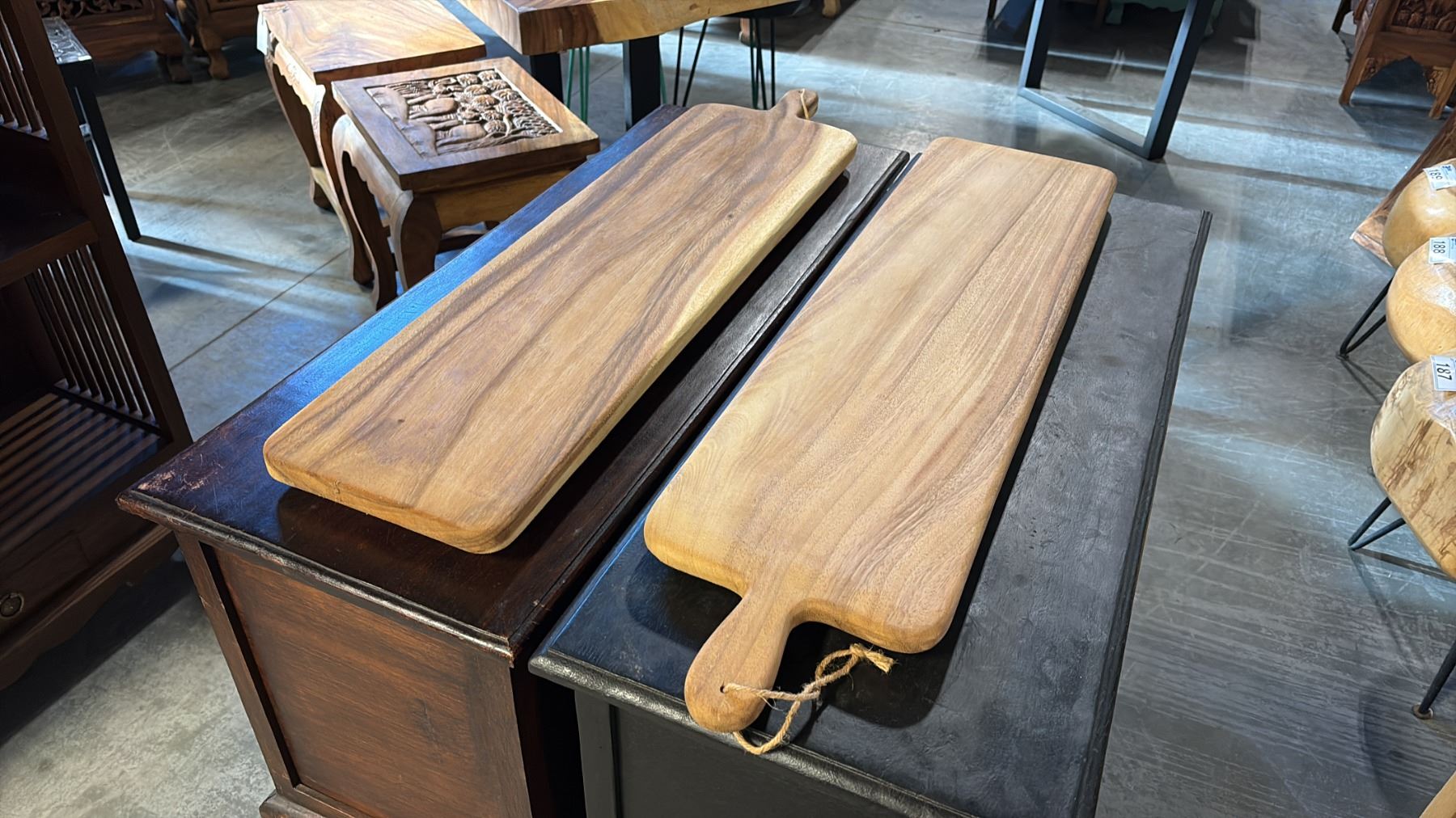2 EXOTIC WOOD CHARCUTERIE PADDLE BOARDS 39"L