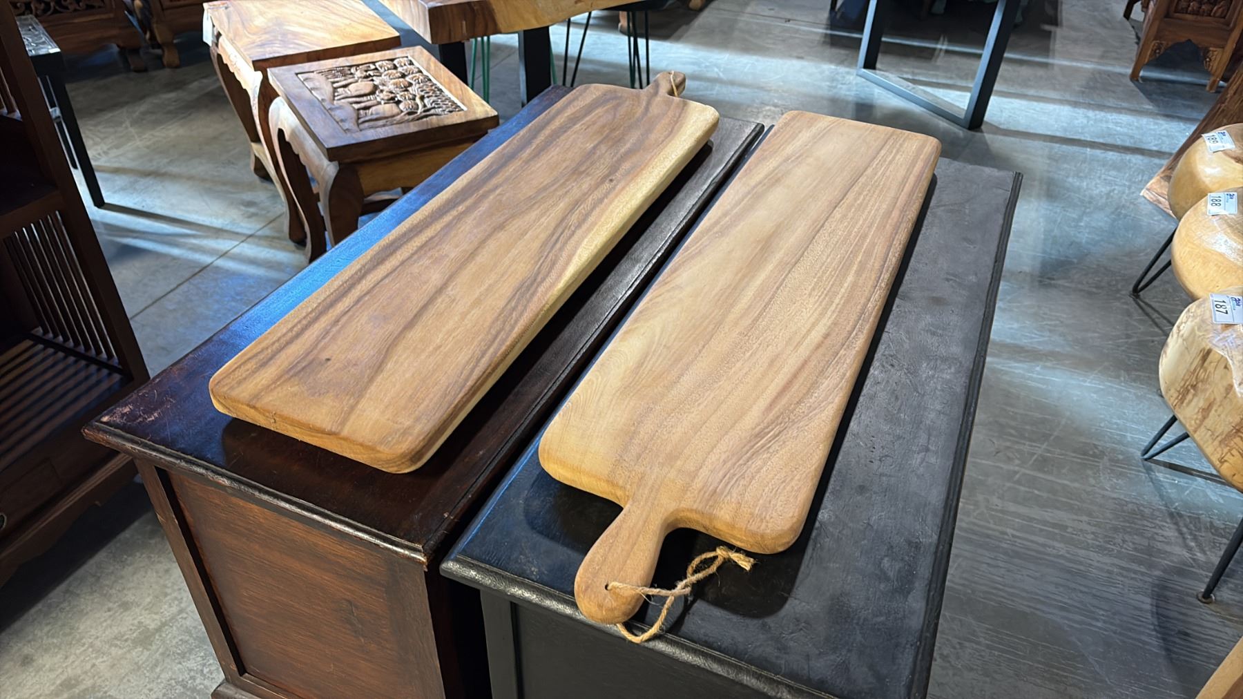 2 EXOTIC WOOD CHARCUTERIE PADDLE BOARDS 39"L