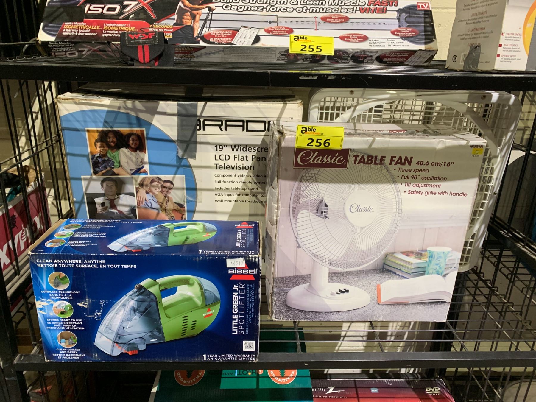 2 FANS, BISSELL LITTLE GREEN JR. CLEANER, AND 19" TV