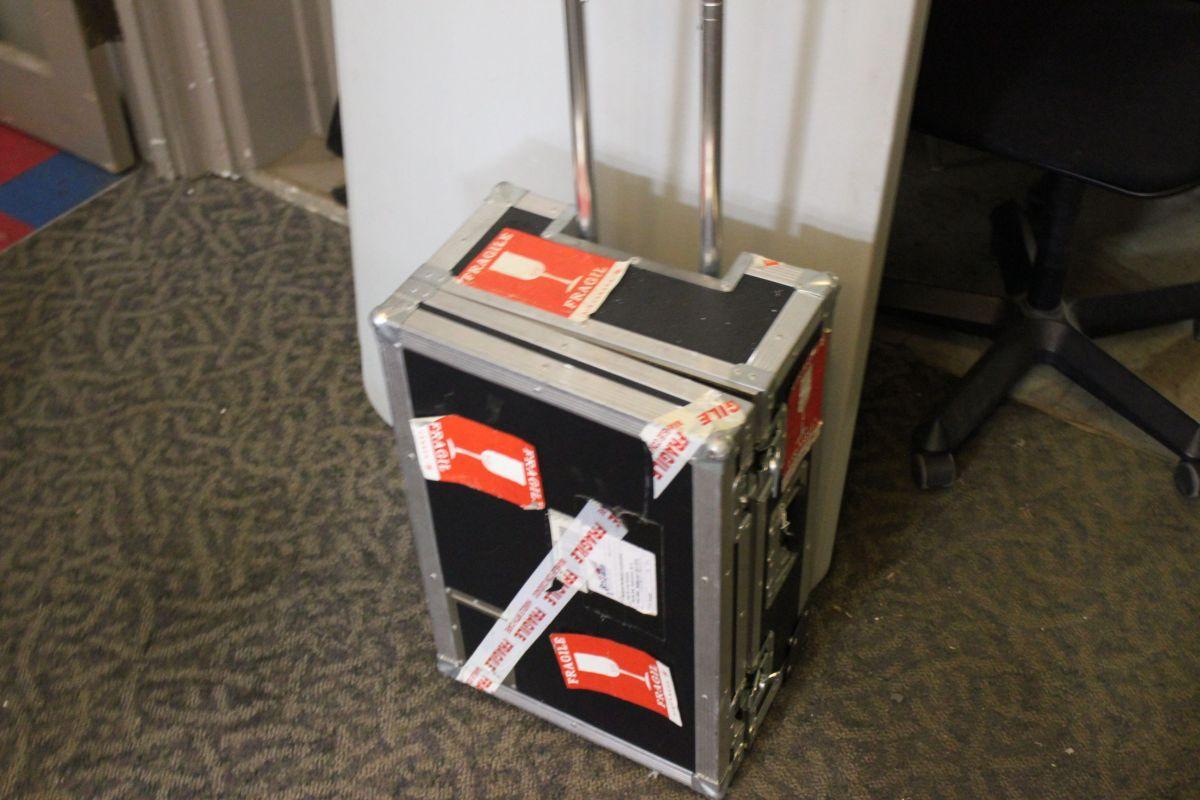 2 FOLDING TABLES AND ROAD CASE