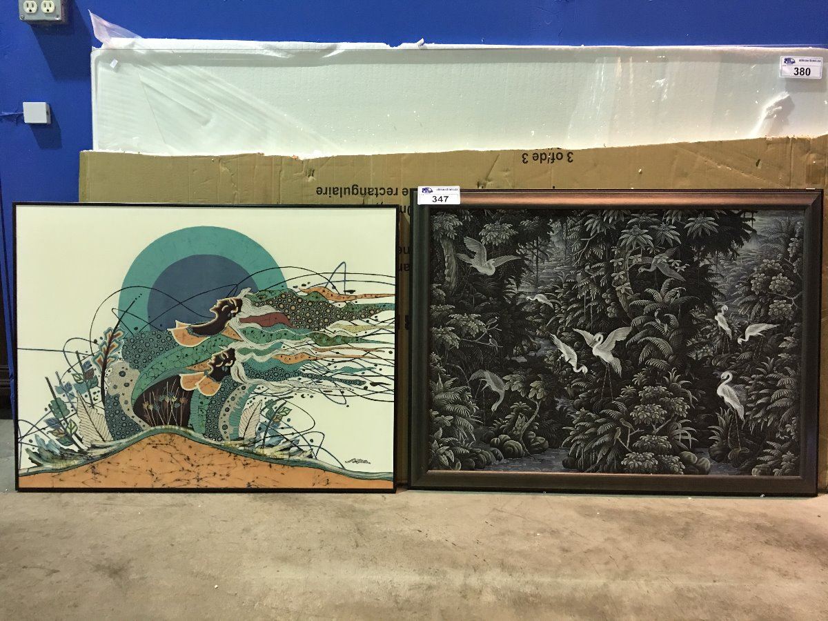 2 FRAMED ART PRINTS ON CLOTH DECORATIVE WALL HANGINGS
