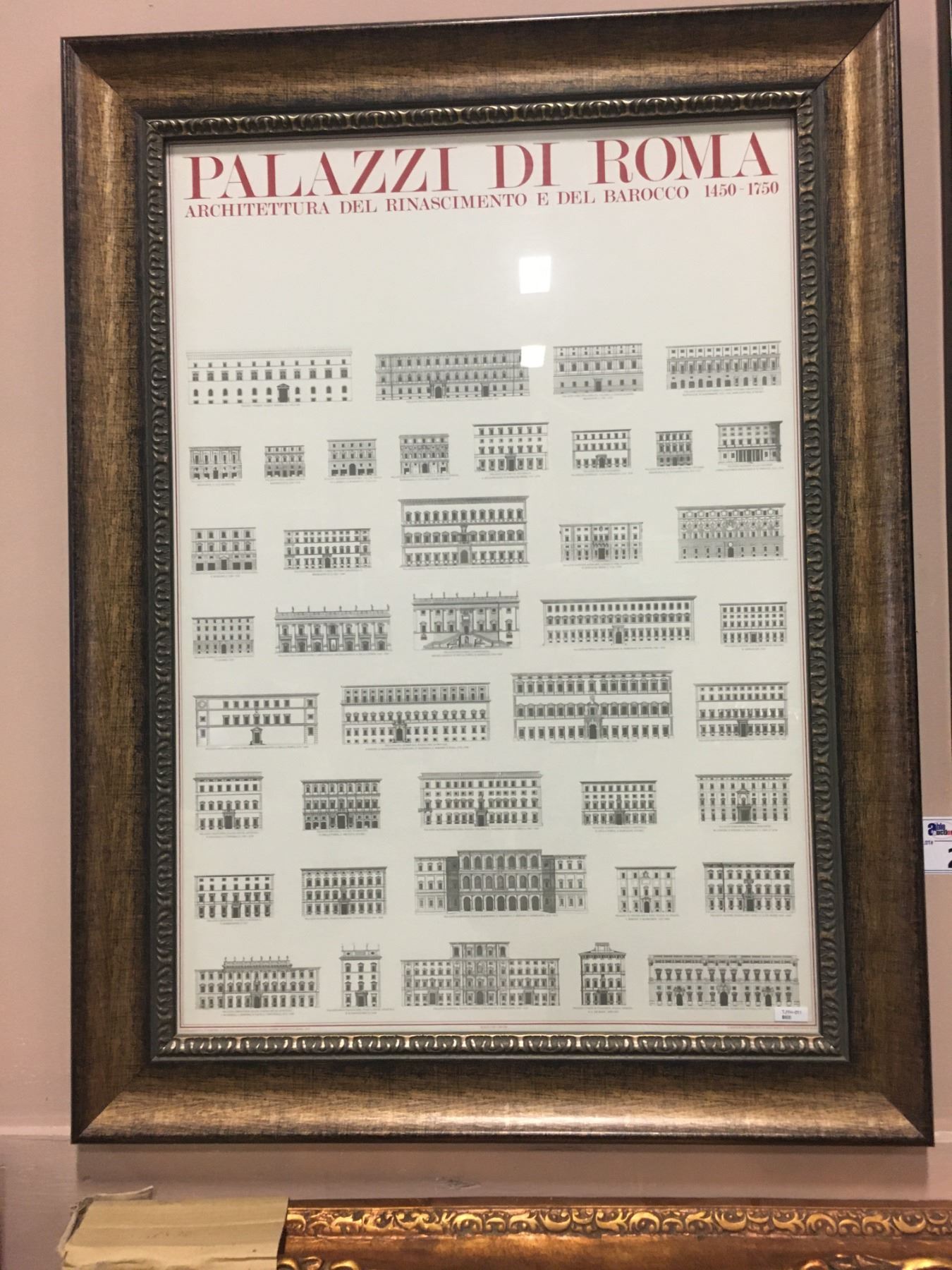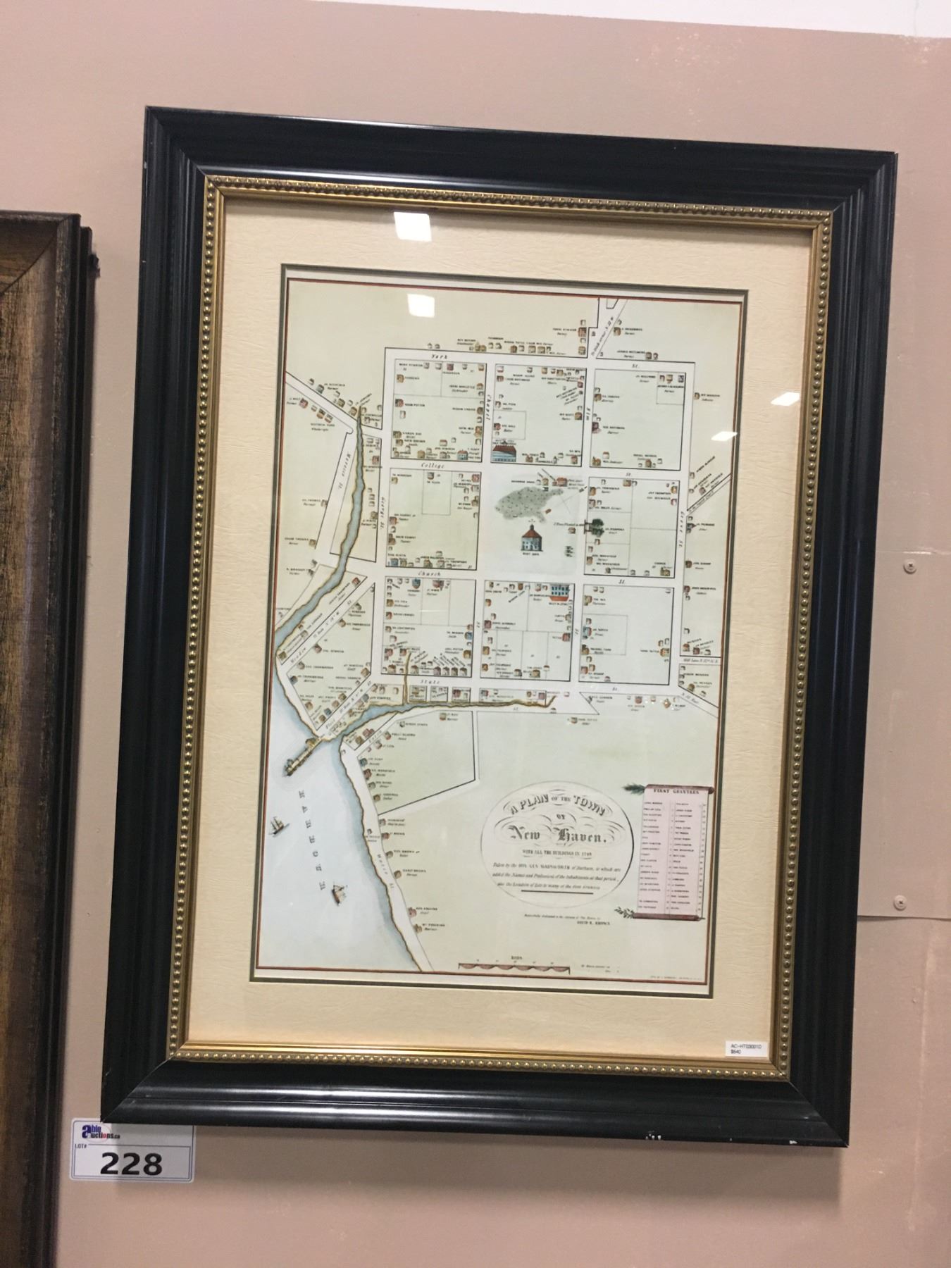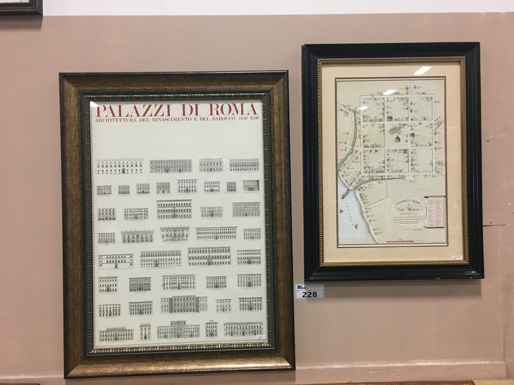2 FRAMED DECORATIVE PRINTS - PALAZZI DI ROMA & NEW HAVEN TOWN PLAN ROMA 29 1/2" X 39 1/2" - NEW HAVEN 23 1/2" X 31 1/2"