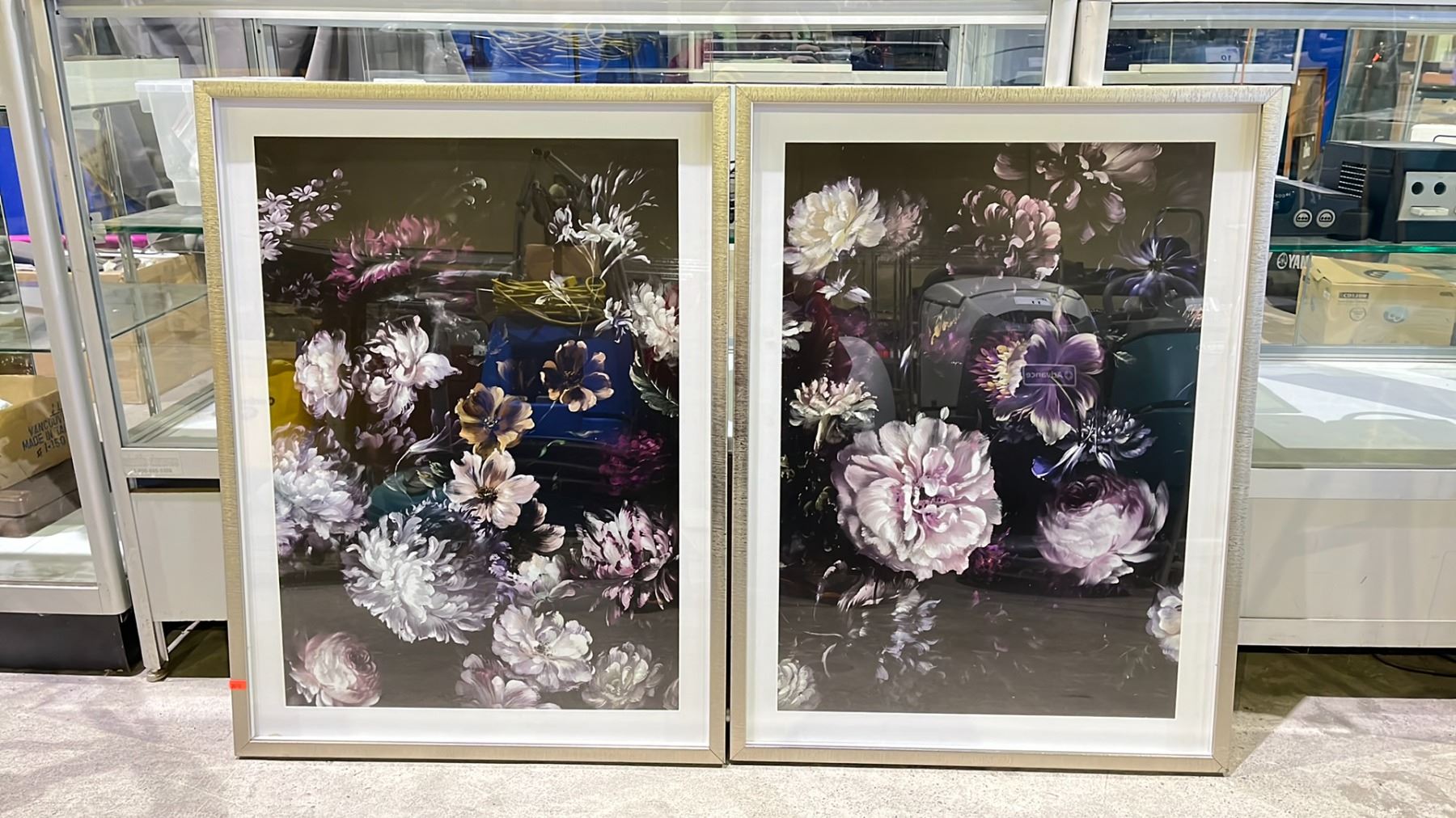 2 FRAMED FLORAL ART PIECES APPROX 24X32" EACH