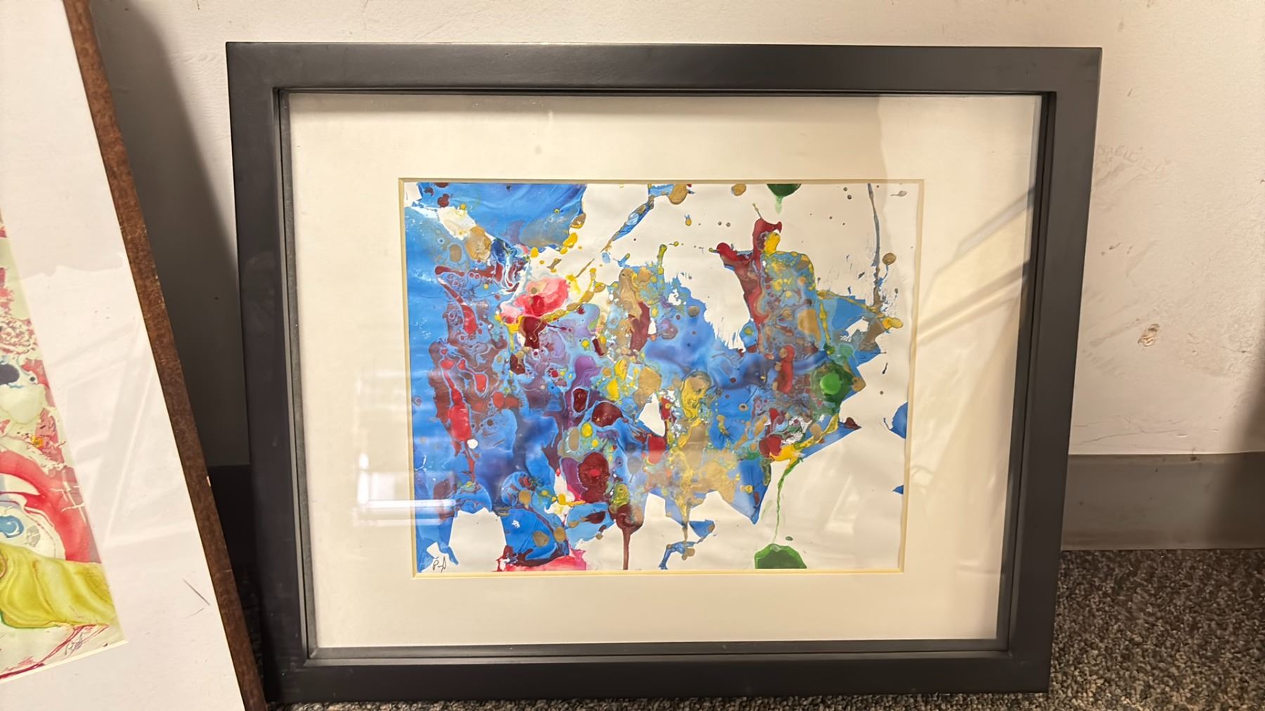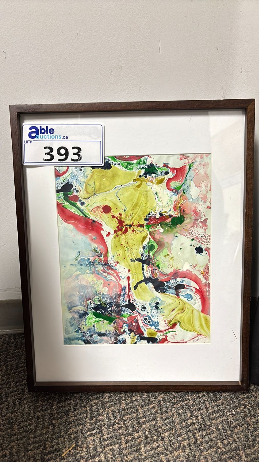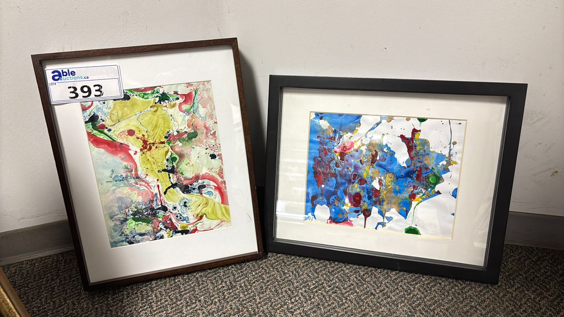 2 FRAMED & MATTED POURED ACRYLIC PAINT ART