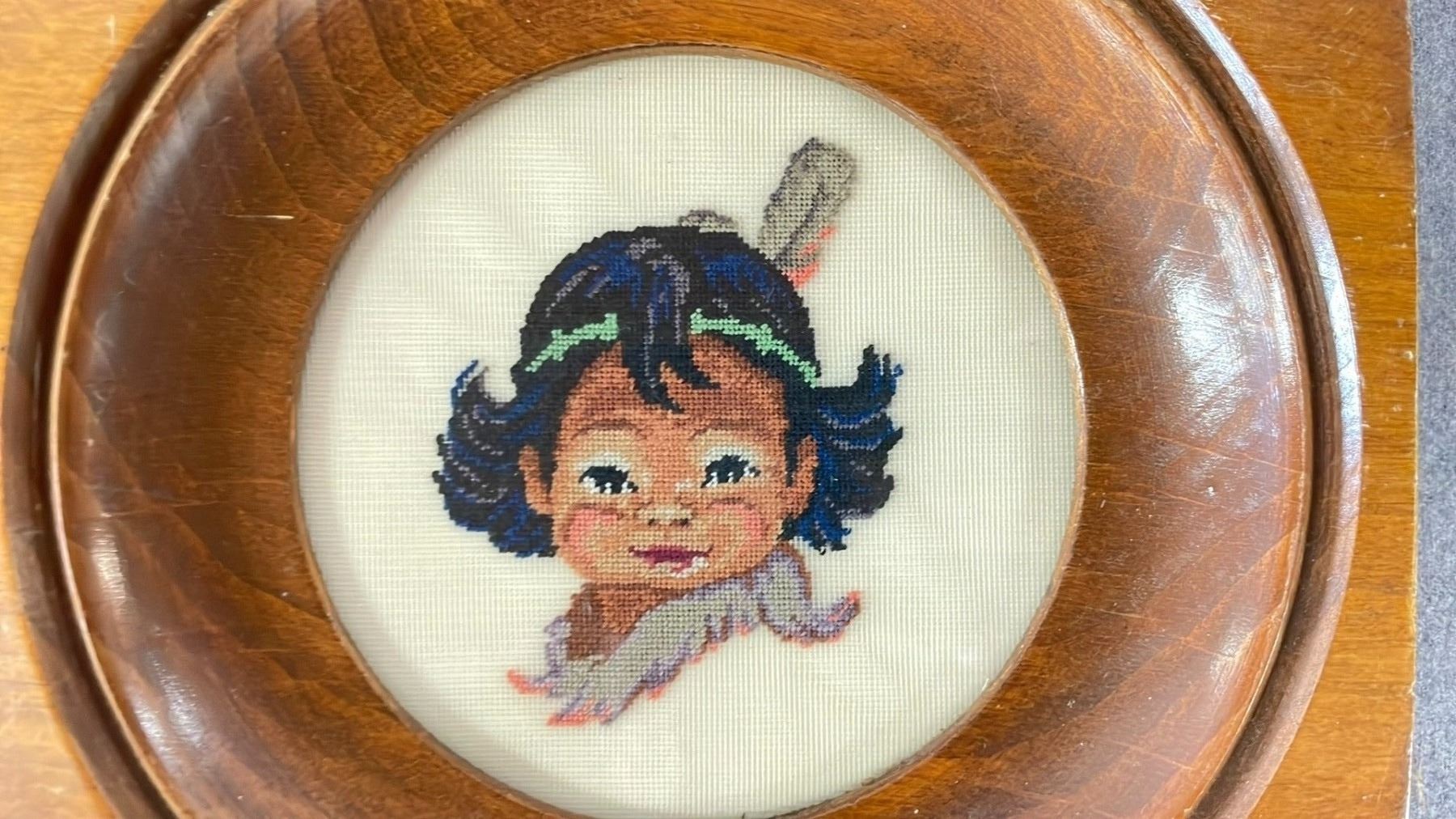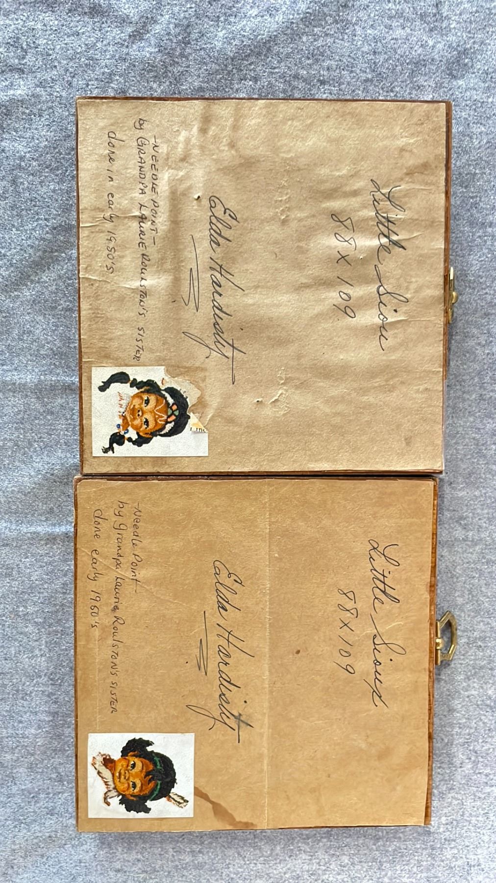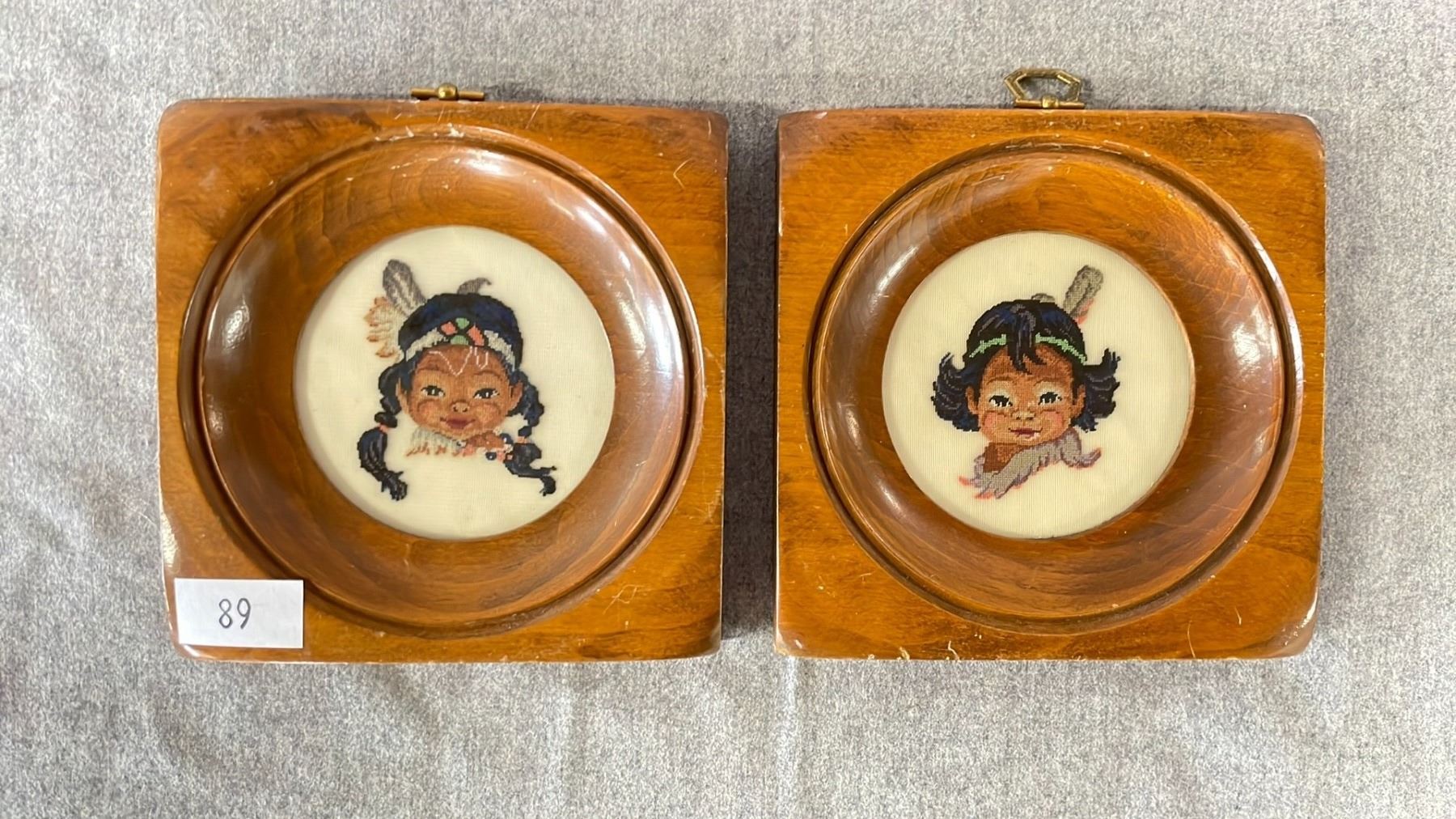 2 FRAMED NEEDLEPOINT ARTWORKS BY ELDA HARDISTY TITLED "LITTLE SIOUX"