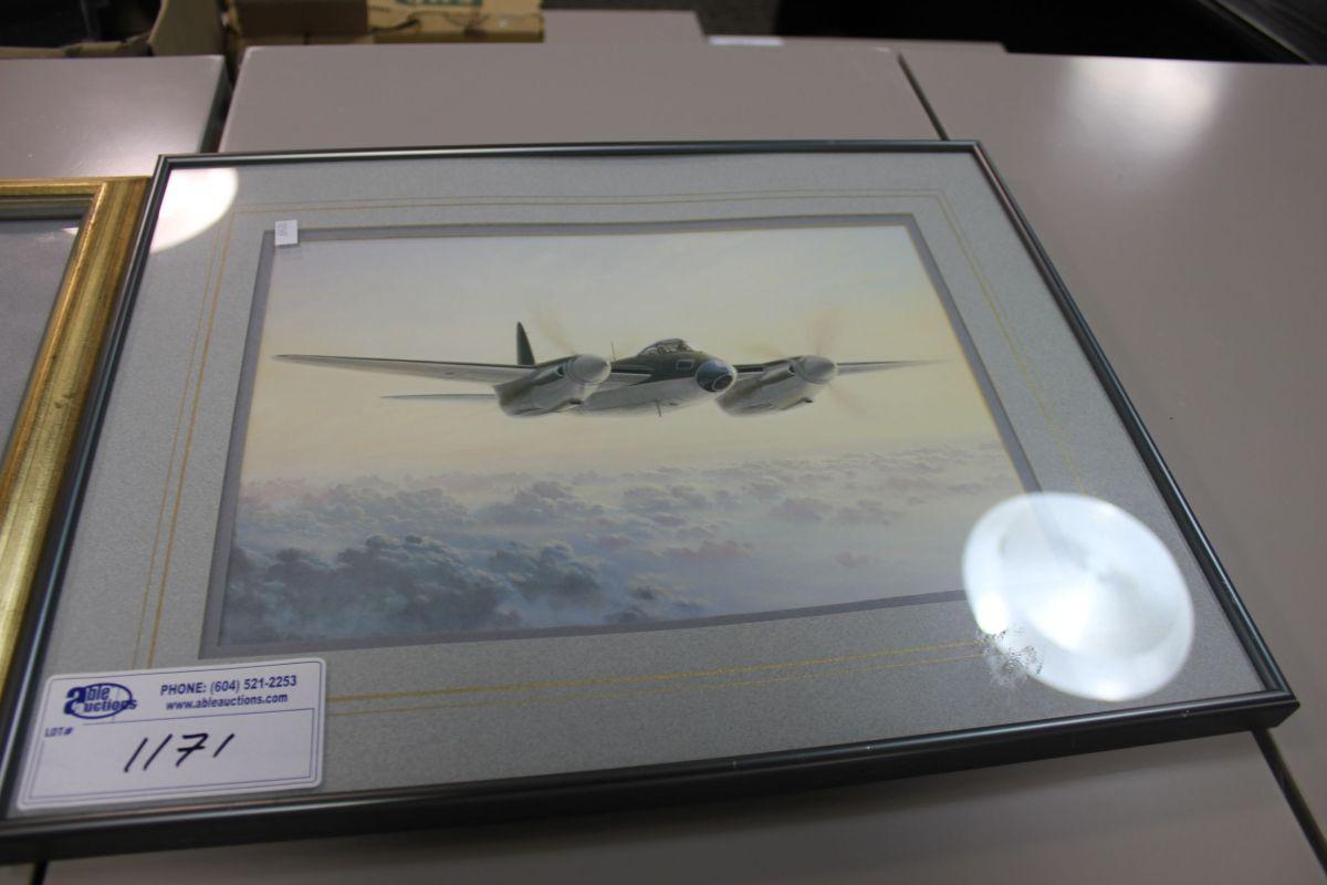 2 FRAMED PIECES OF ART BOMBER AND FLOWERS