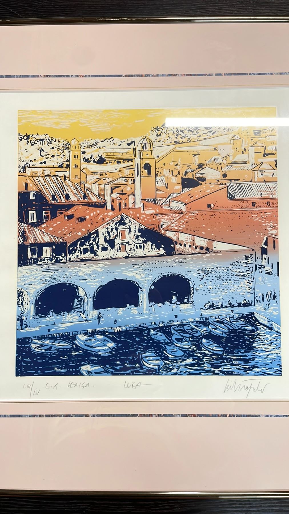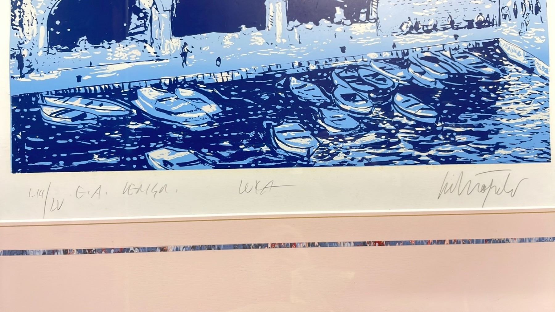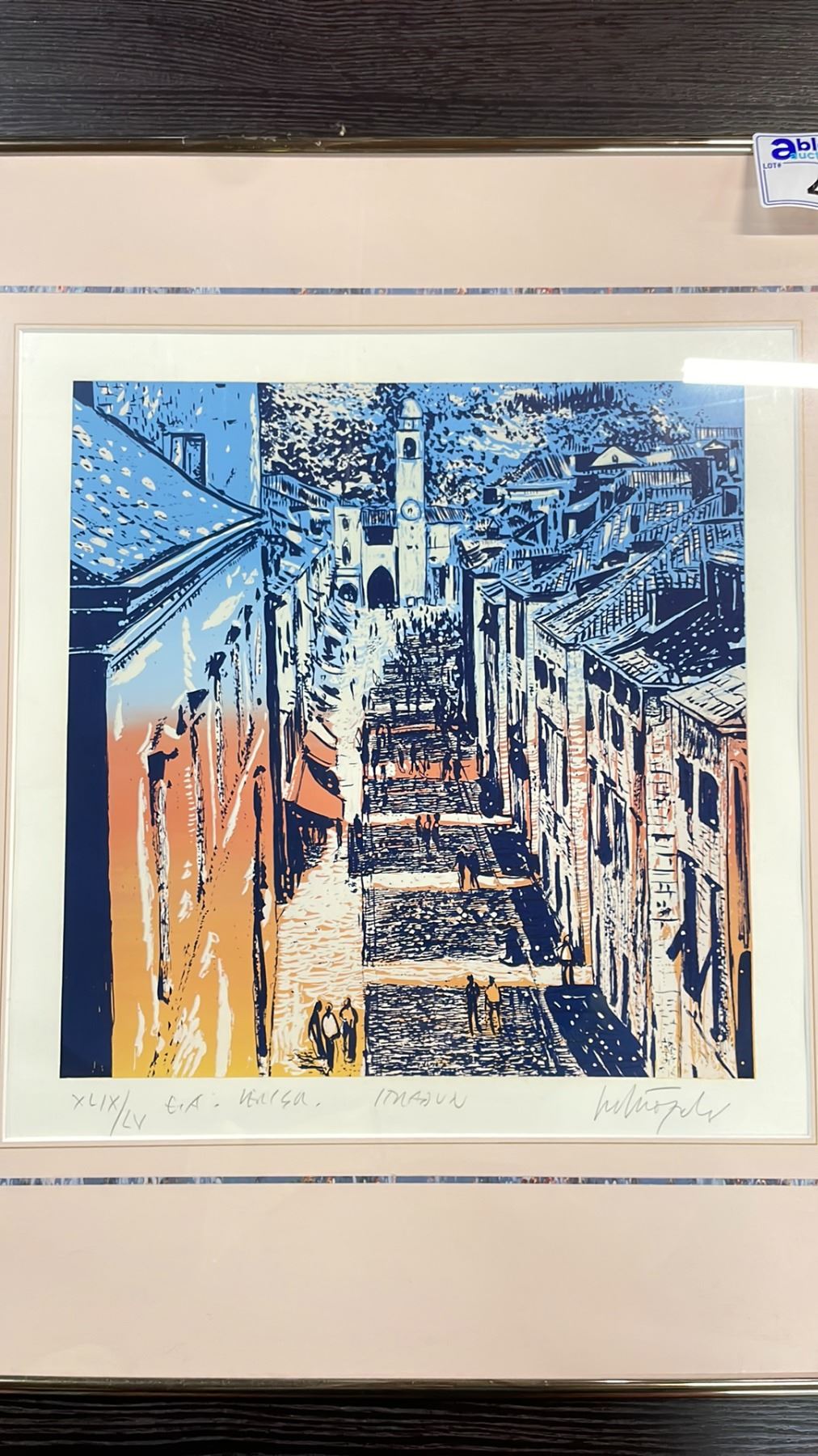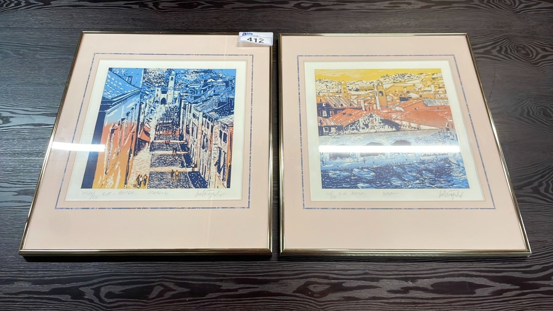 2 FRAMED WOOD BLOCK LIMITED EDITION PRINTS ITALIAN 26" X 23" AUTHENTIC ITALIAN WRITEN IN ROMAN NUMERALS VENICE 53/55 & 49/55"
