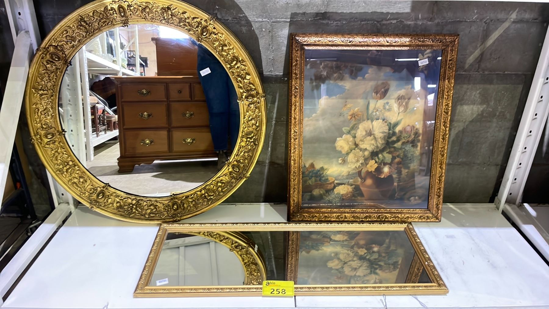 2 GILD FRAMED MIRRORS & GILD FRAMED ARTWORK