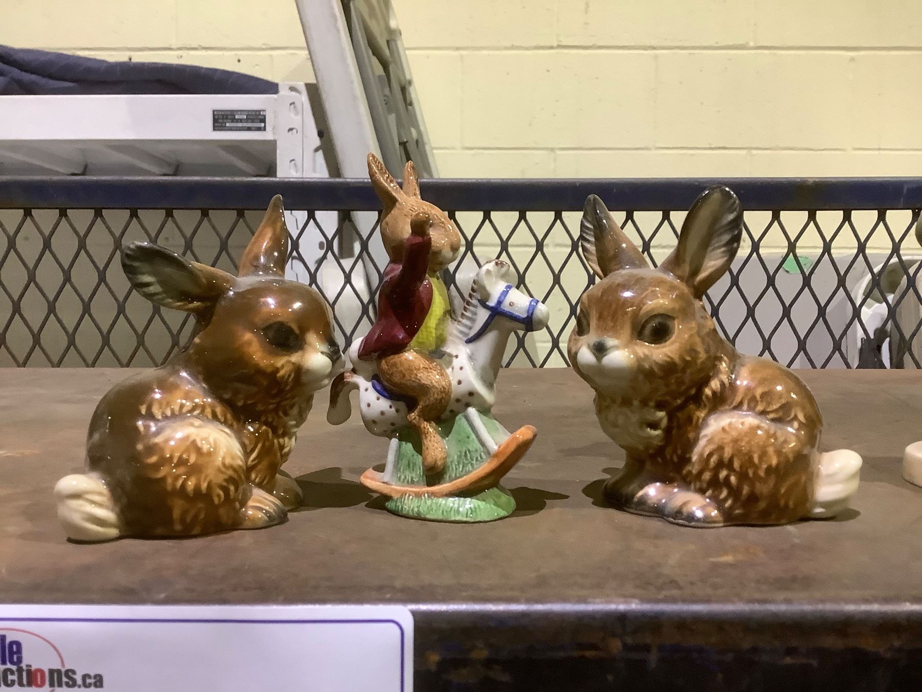2 GOEBEL COLLECTIBLE BUNNY FIGURES & ROYAL DOULTON "BUNNYKINS TALLY HO" DB 12 FIGURE