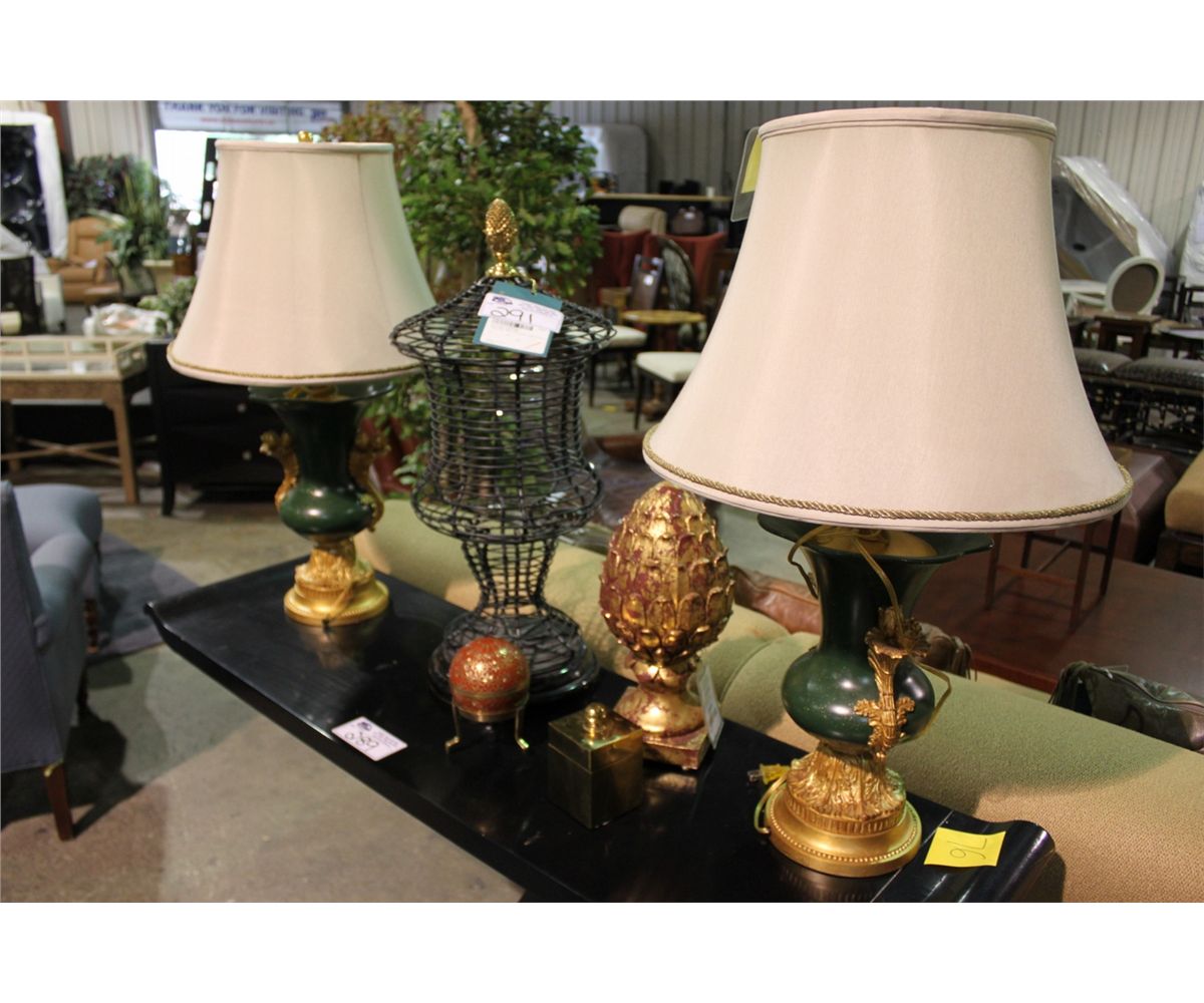 2 GOLD LAMPS & 4 DECOR ITEMS