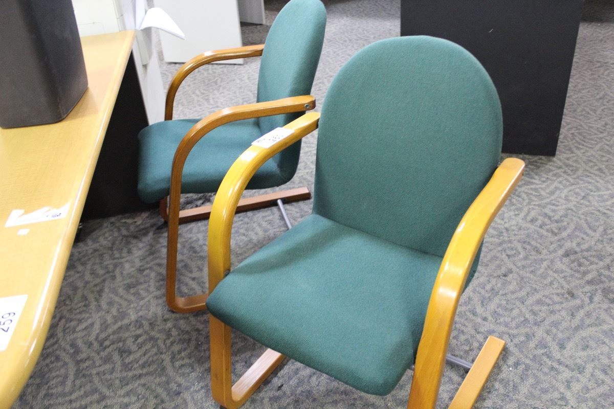 2 GREEN MAPLE FRAMED CLIENT CHAIRS