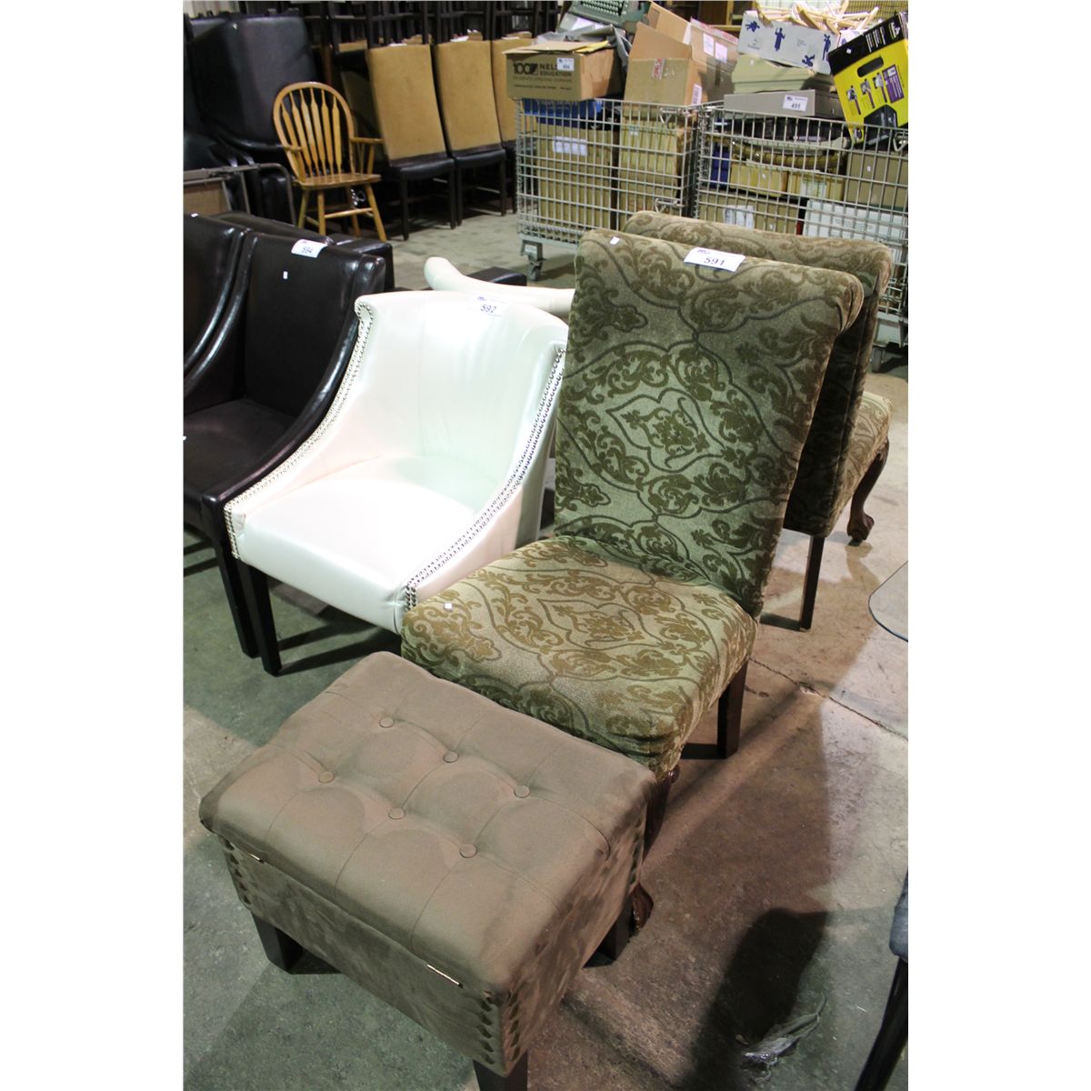 2 GREEN OCCASIONAL CHAIRS WITH OTTOMAN