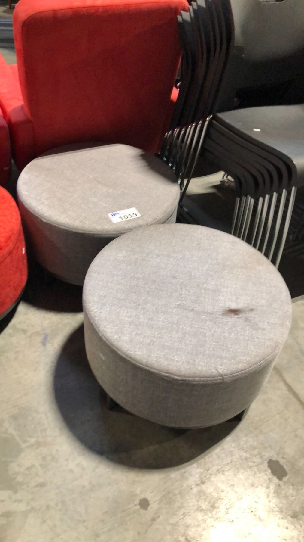 2 GREY 24" W OTTOMANS (1 WITH STAINS)