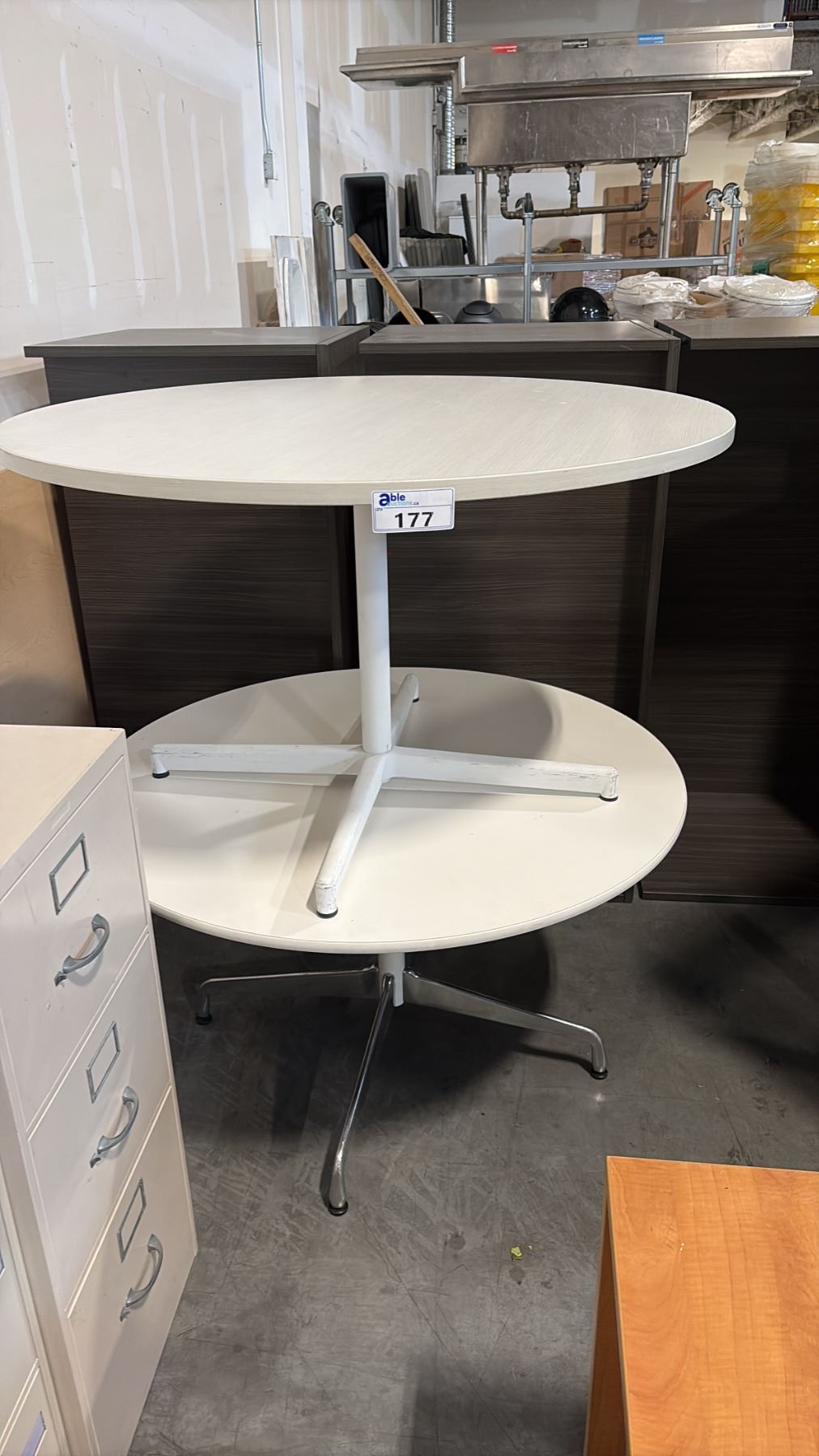 2 GREY 48" ROUND LUNCHROOM TABLES