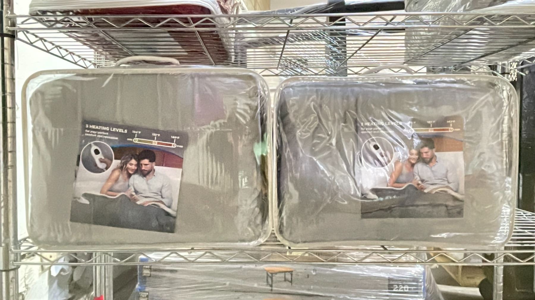 (2) GREY FLEECE LINED HEATED BLANKETS WITH 3 HEATING LEVELS