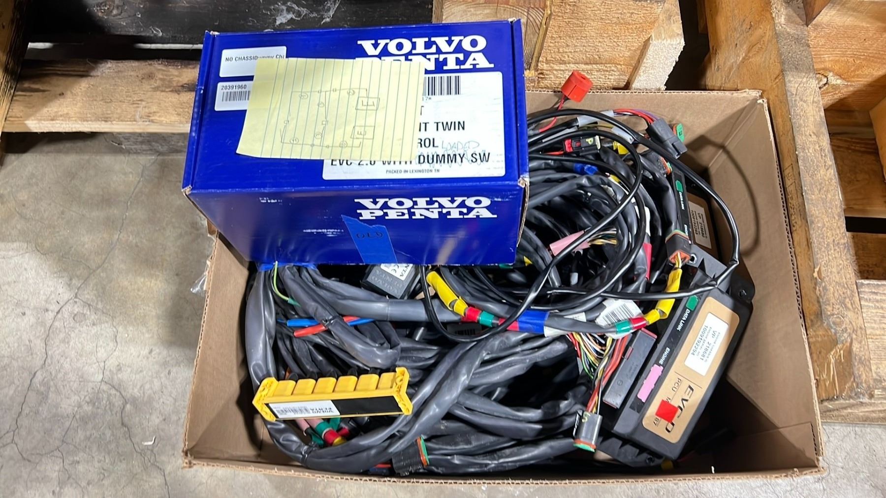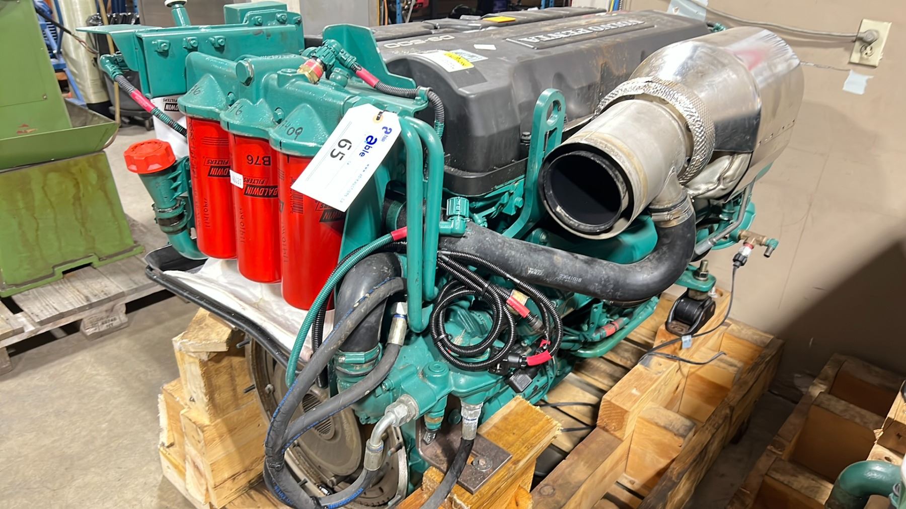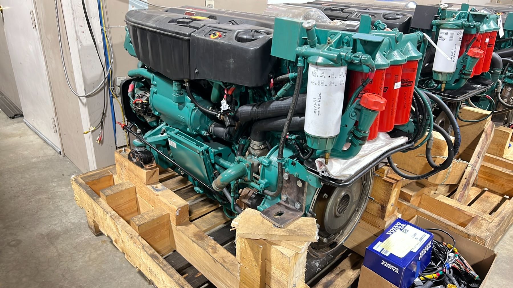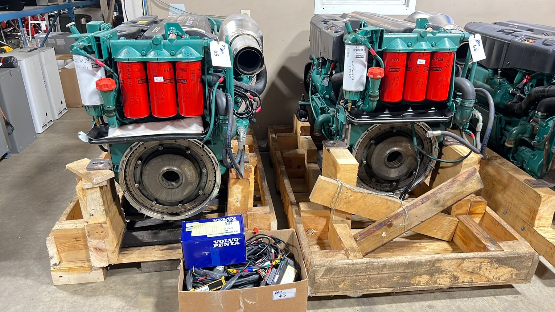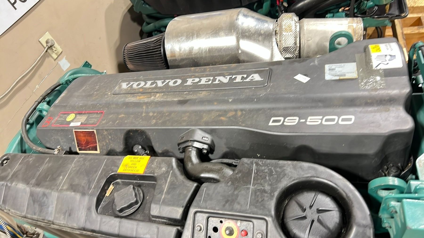 2 HEAVY DUTY VOLVO PENTA D9-500 DIESEL MARINE INBOARD ENGINES WITH TWIN TOP MOUNT CONTROL, EVCD LINK VOLVO WIRING HARNESS, APPROXIMATELY 12K ENGINE HOURS, GOOD WORKING ORDER *ON PALLETS READY FOR TRANSPORT*