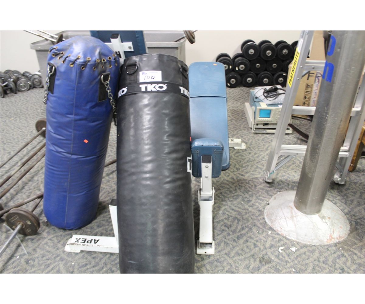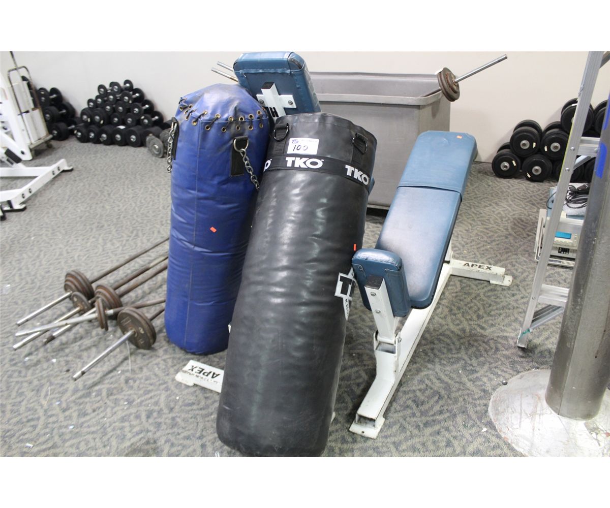 2 HEAVY PUNCHING BAGS & 2 BLUE WEIGHT BENCHES