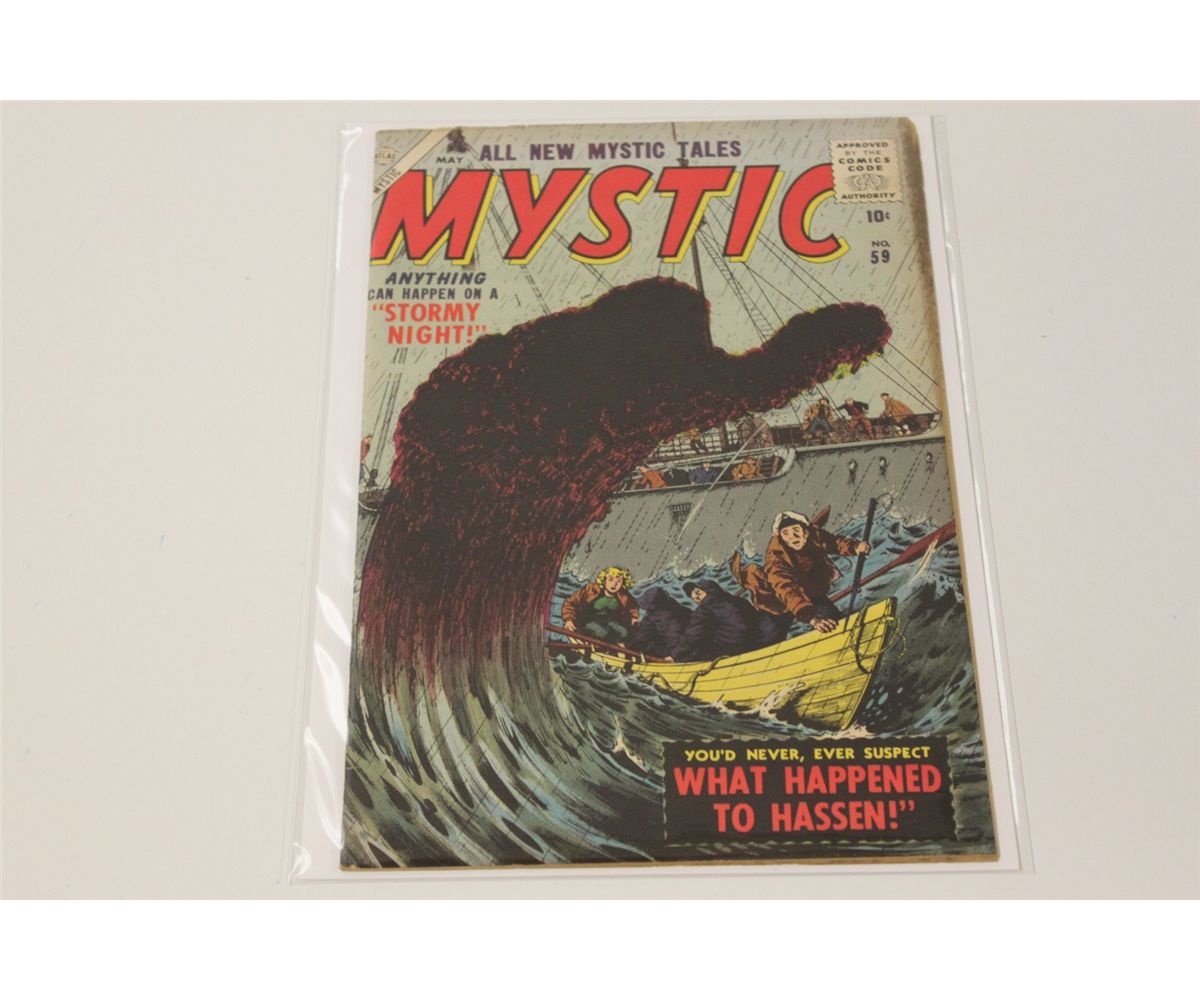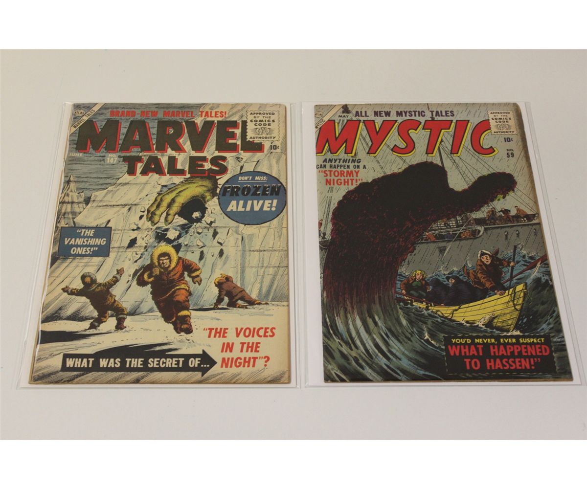 2 HIGHER GRADE 1950'S ATLAS HORROR MARVEL TALES #147 (1956) & MYSTIC #59 (1957) GREAT BILL EVERETT COVERS. SHARP & GLOSSY COPIES. EXCELLENT !