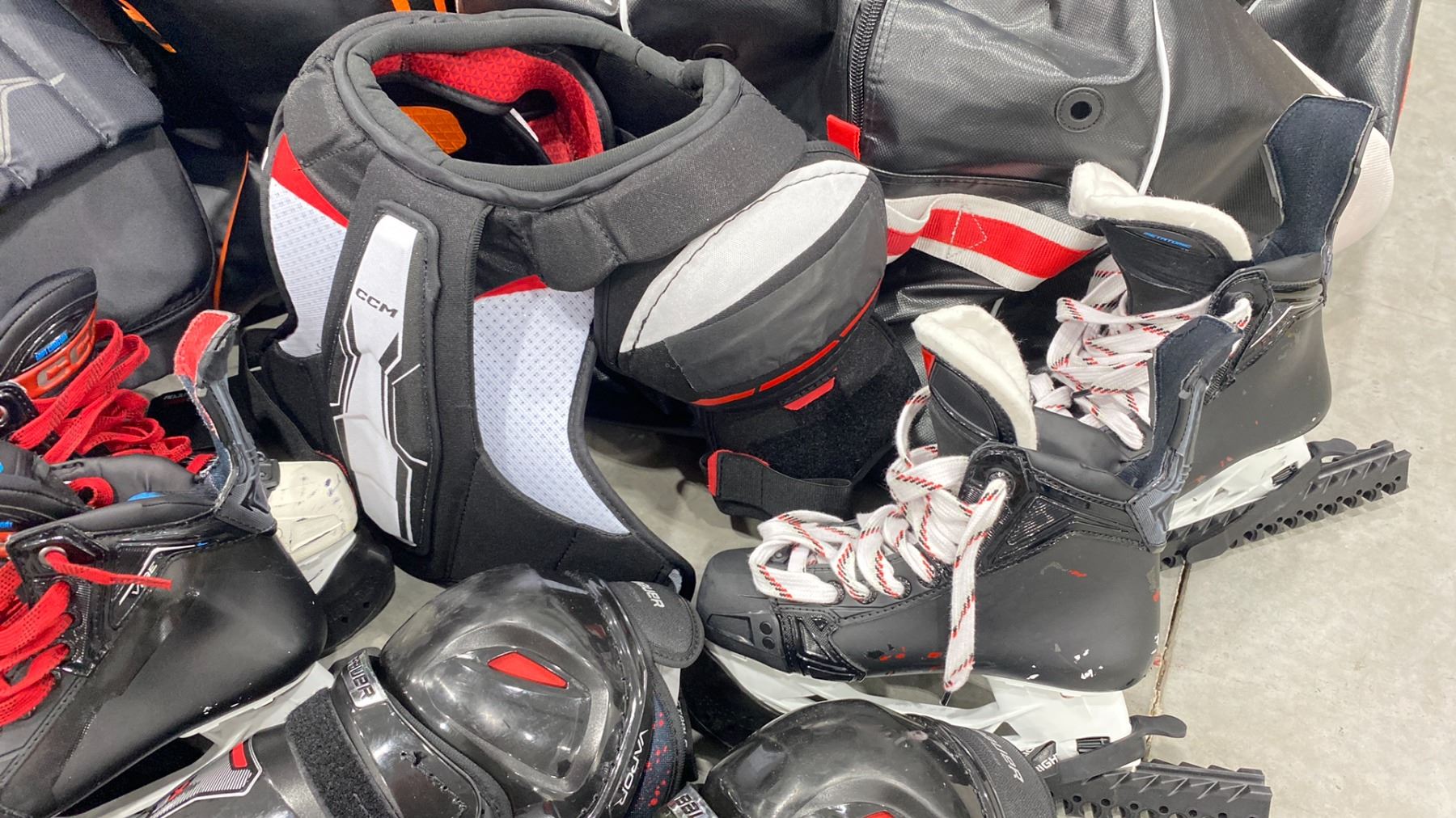(2) HOCKEY BAGS WITH ASSORTED HOCKEY GEAR CONTENTS