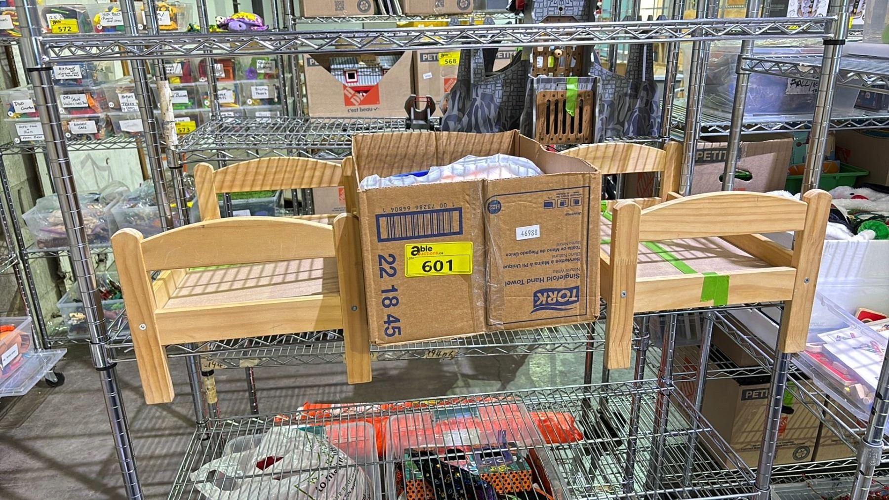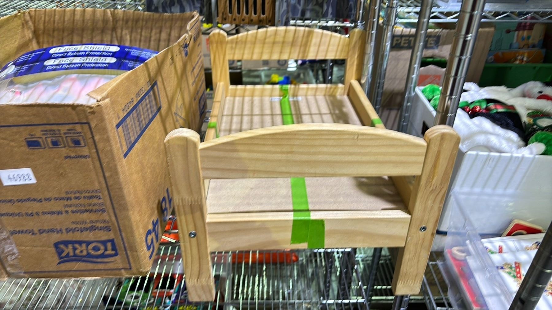 (2) IKEA DUKTIG DOLL BEDS & BOX OF CHILDREN'S ANIMAL VISOR FACE SHIELDS