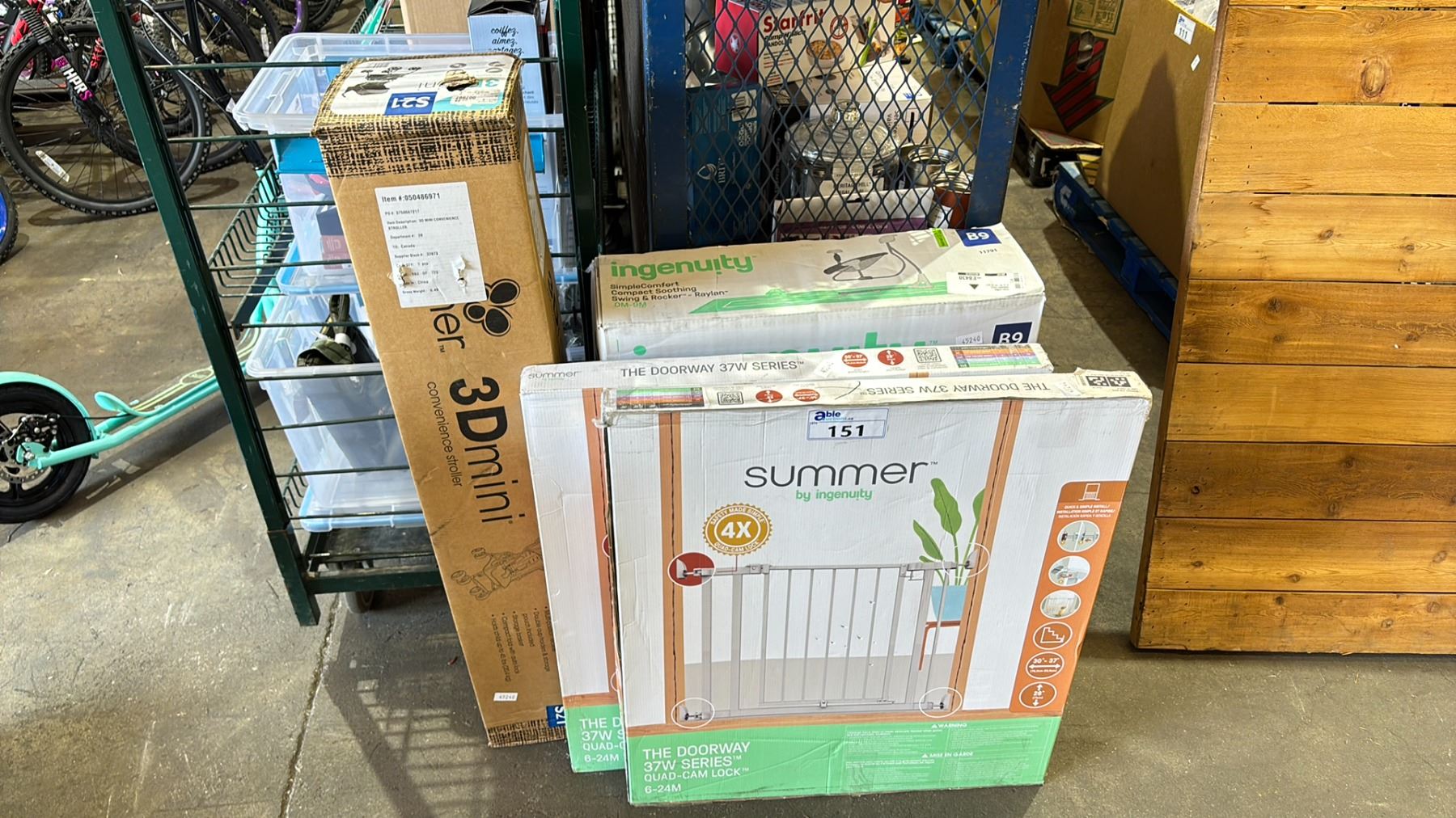 2 - INGENUITY THE DOORWAY 37W SERIES QUAD-CAM LOCK ( 6 - 24M ), INGENUITY SIMPLE COMFORT COMPACT SOOTHING SWING & ROCKER ( 0M - 9M ) & A 3D MINI CONVIVENCE STROLLER