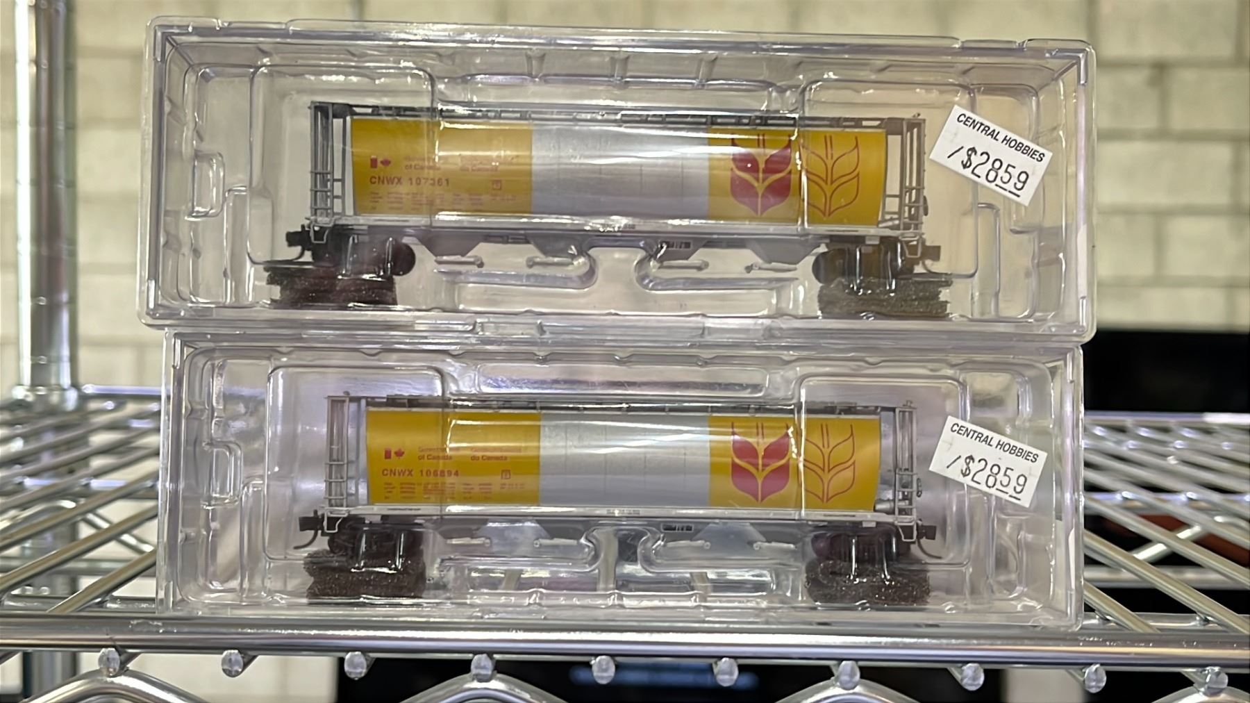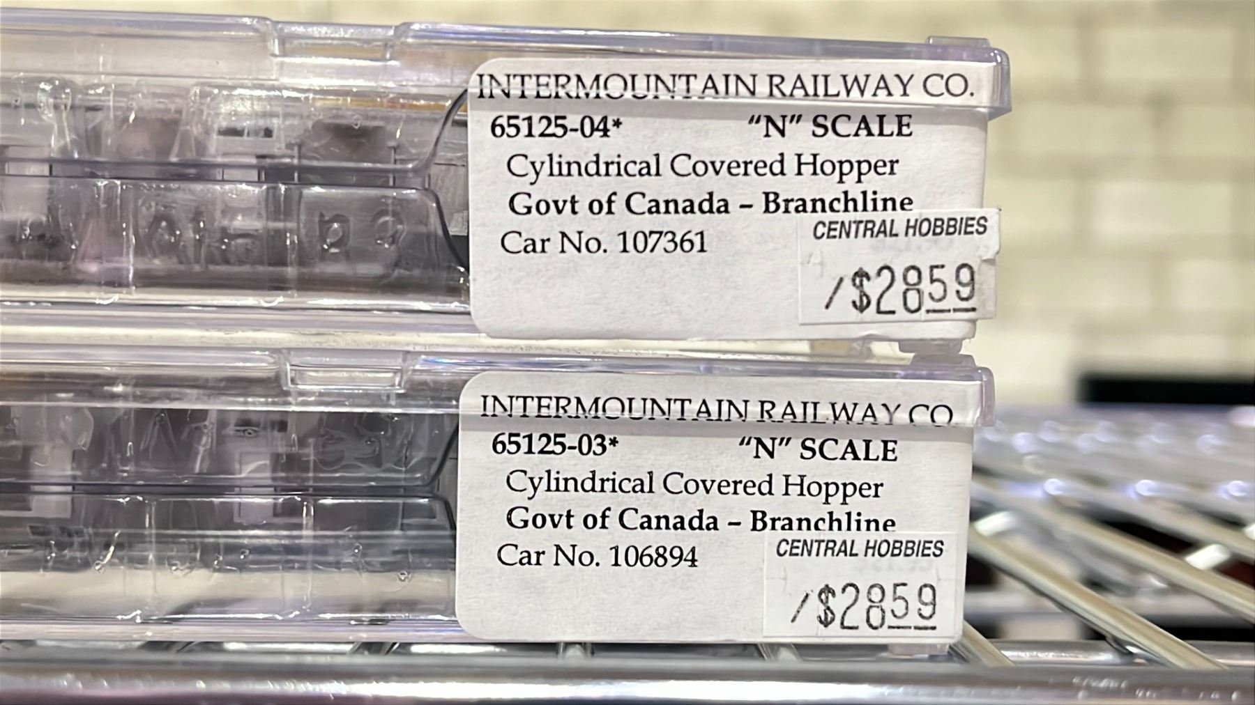 (2) INTERMOUNTAIN RAILWAY COMPANY GOVERNMENT OF CANADA CYLINDRICAL COVERED HOPPER N SCALE MODEL TRAINS