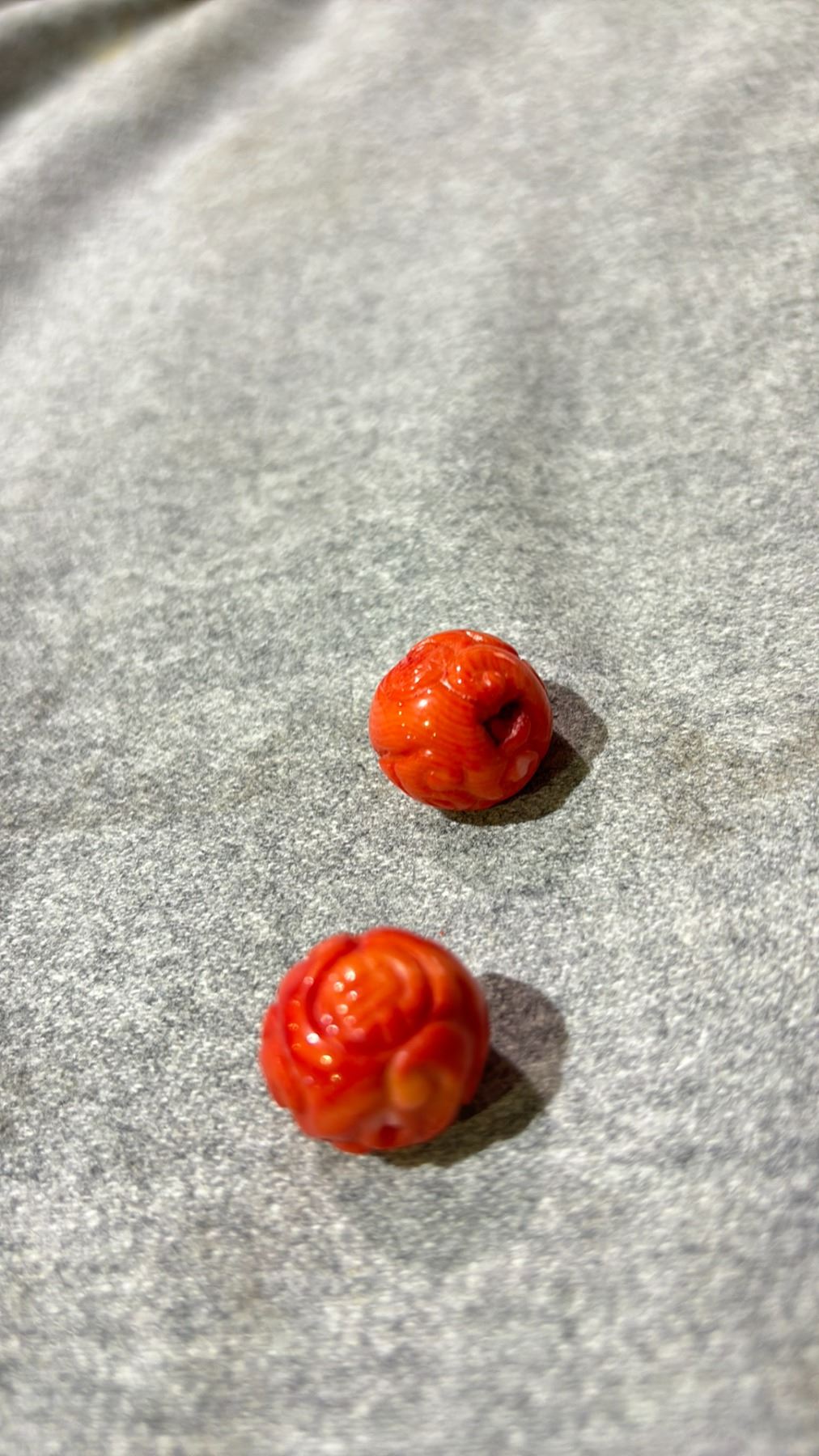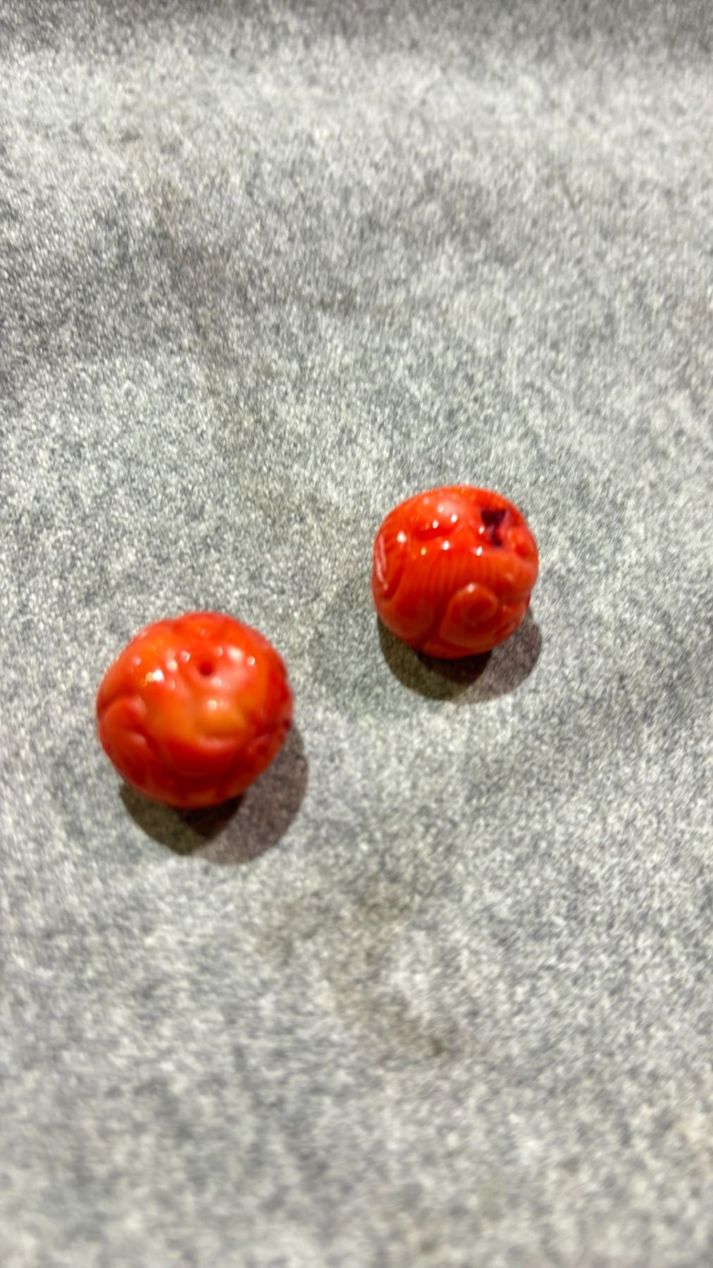 2 JAPANESE RED CORAL BEADS APPROX 1/2"