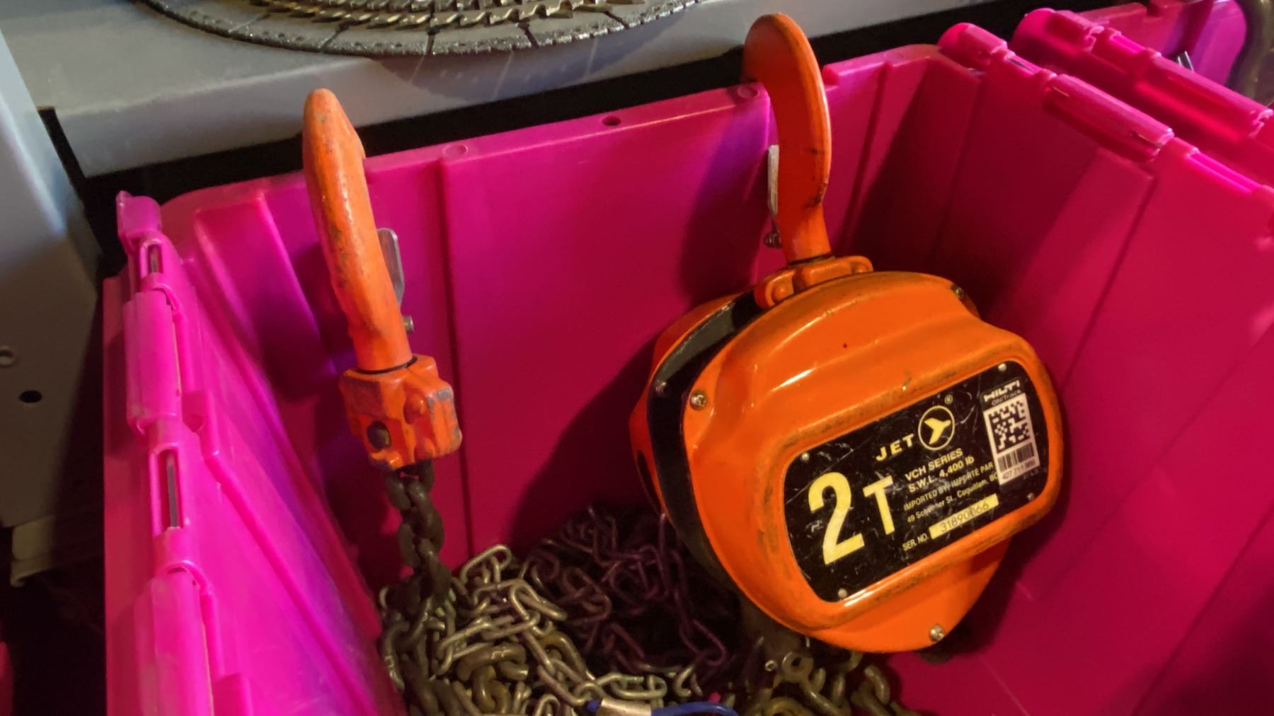 2 JET 2 TON CAPACITY CHAIN HOISTS *BIN NOT INCLUDED*