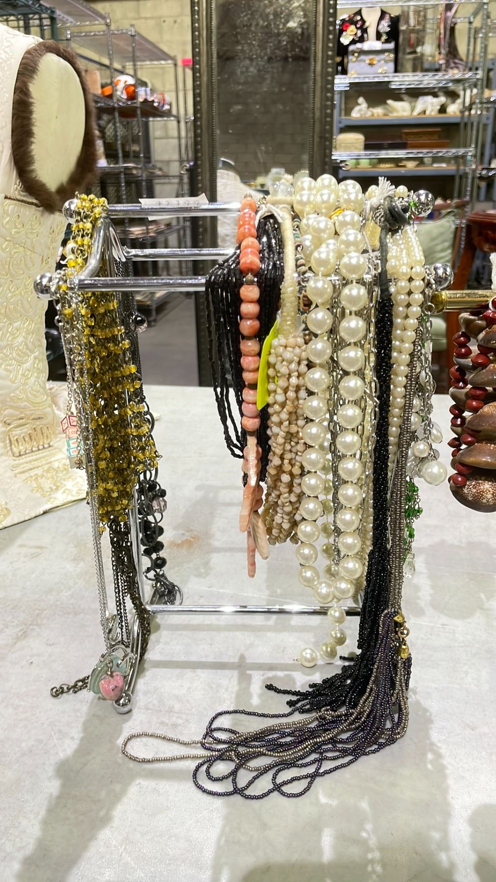 2 JEWELLERY STANDS WITH COSTUME JEWELLERY