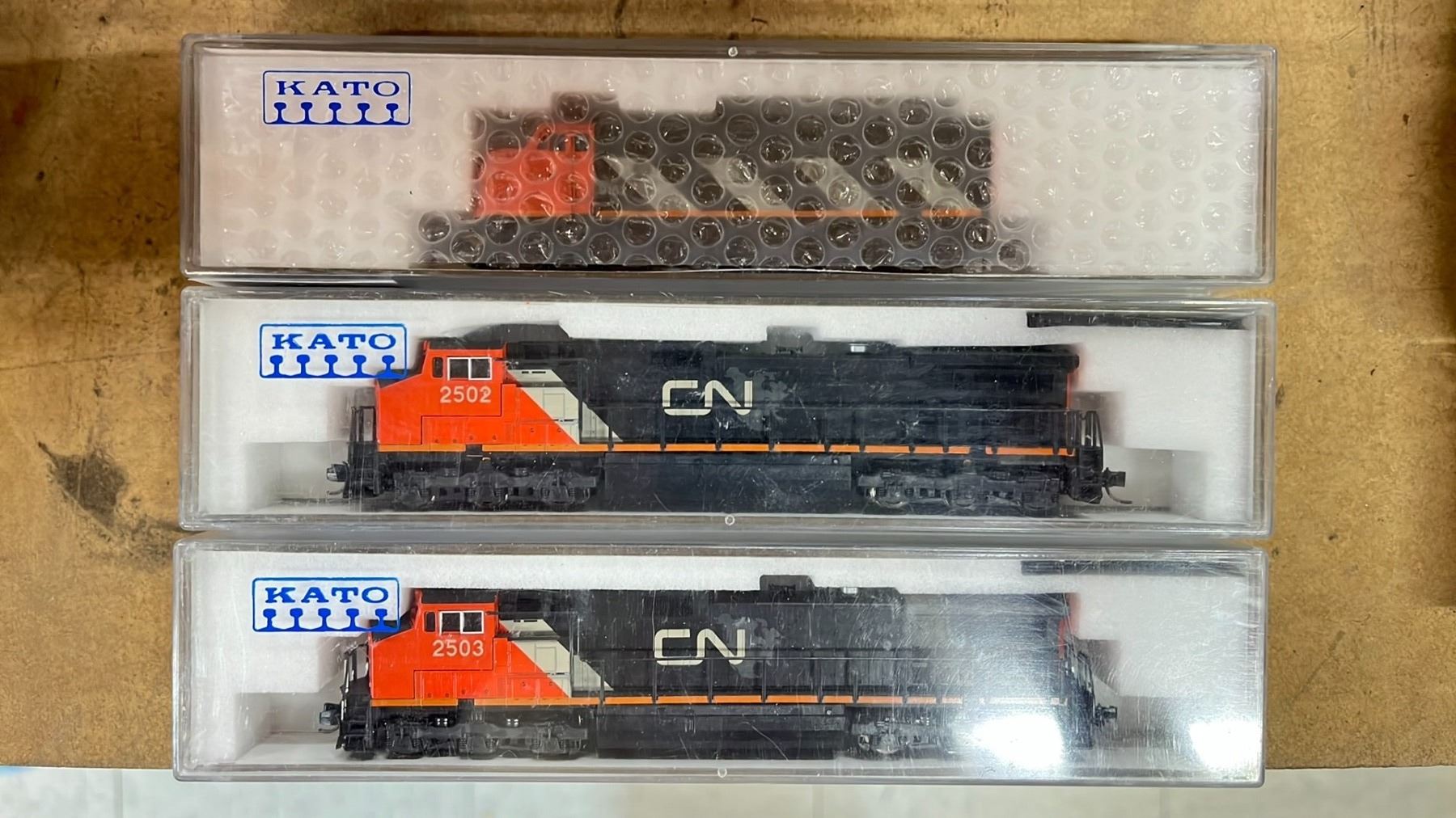 2 KATO GE C44-9W & A KATO EMD F7 CANADIAN NATIONAL N SCALE MODEL TRAINS