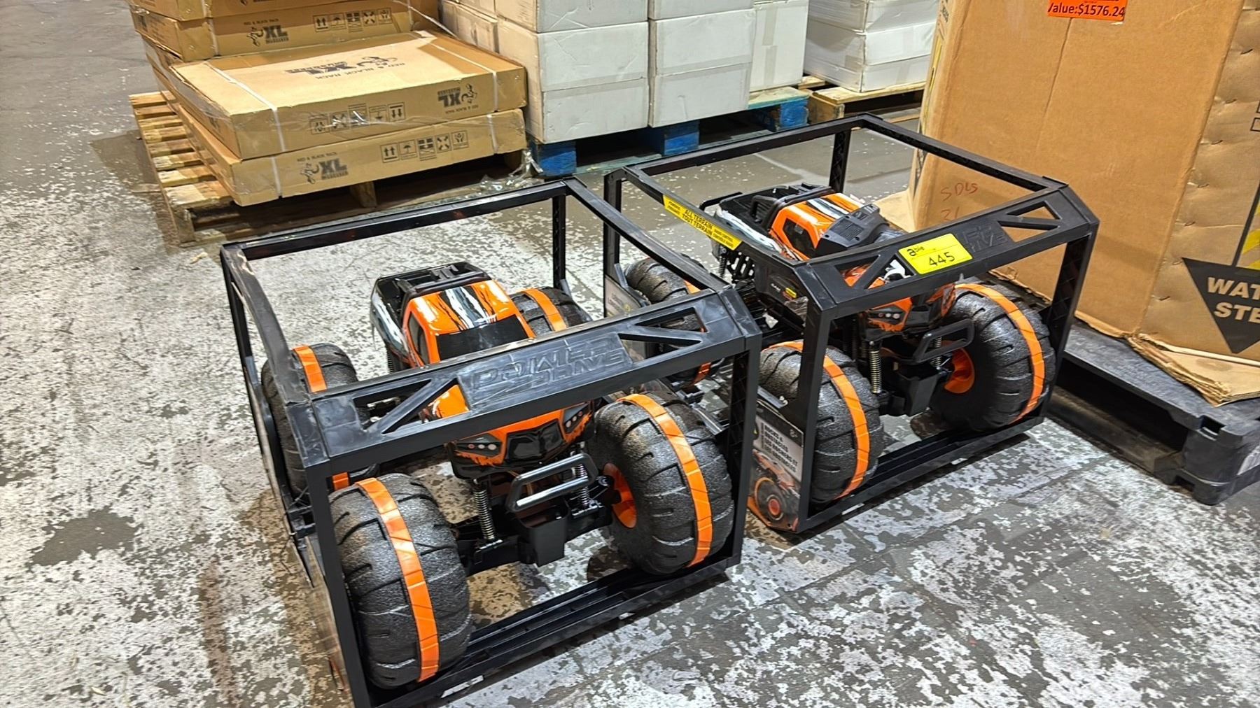 (2) KID GALAXY MONSTER DRIVE MONSTER TRUCK RC CARS (1 REMOTE, UNKNOWN WORKING CONDITION)