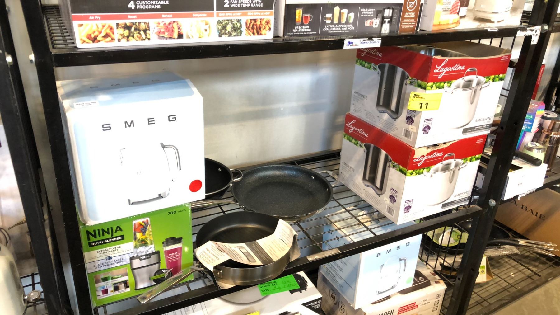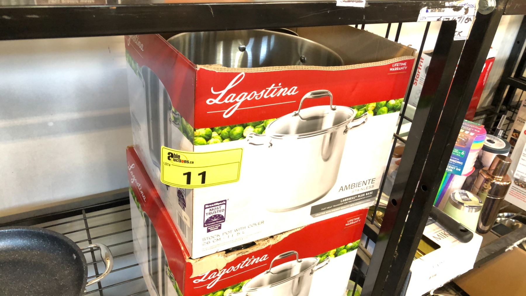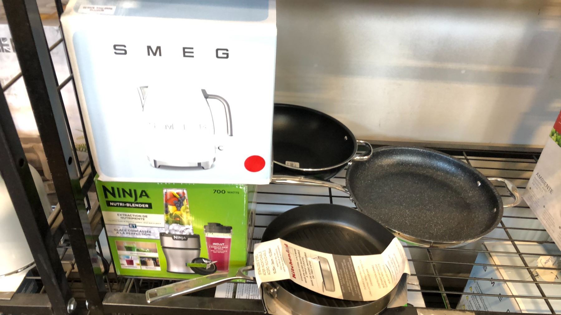 2 LAGOSTINA STOCK POTS WITH 1 LID, VARIOUS PANS INCLUDING KITCHENAID, SMEG KETTLE AND NINJA BLENDER