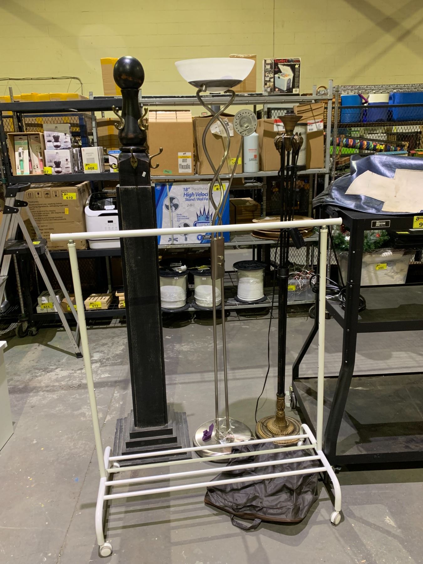 2 LAMPS, COAT RACK AND MOBILE CLOTHING RACK