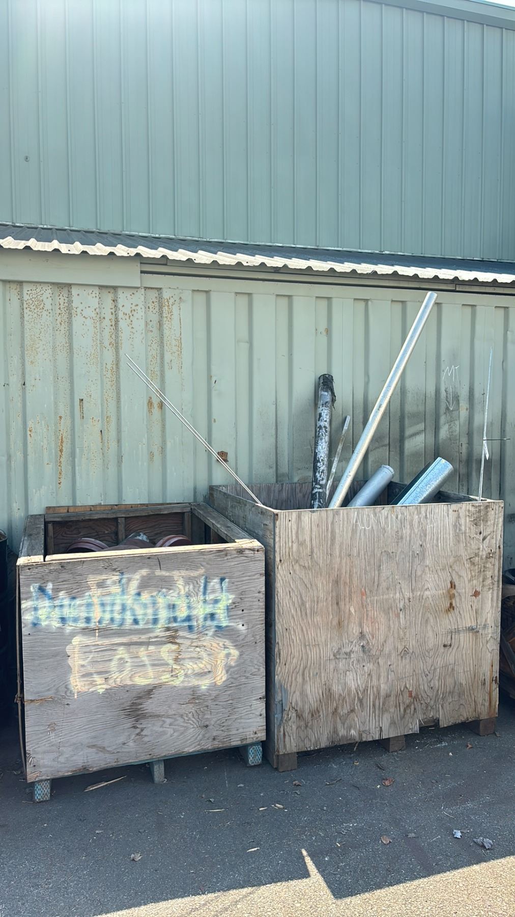 2 LARGE WOODEN CRATES & CONTENTS - ASSORTED METAL & ASSORTED HARD PLASTICS