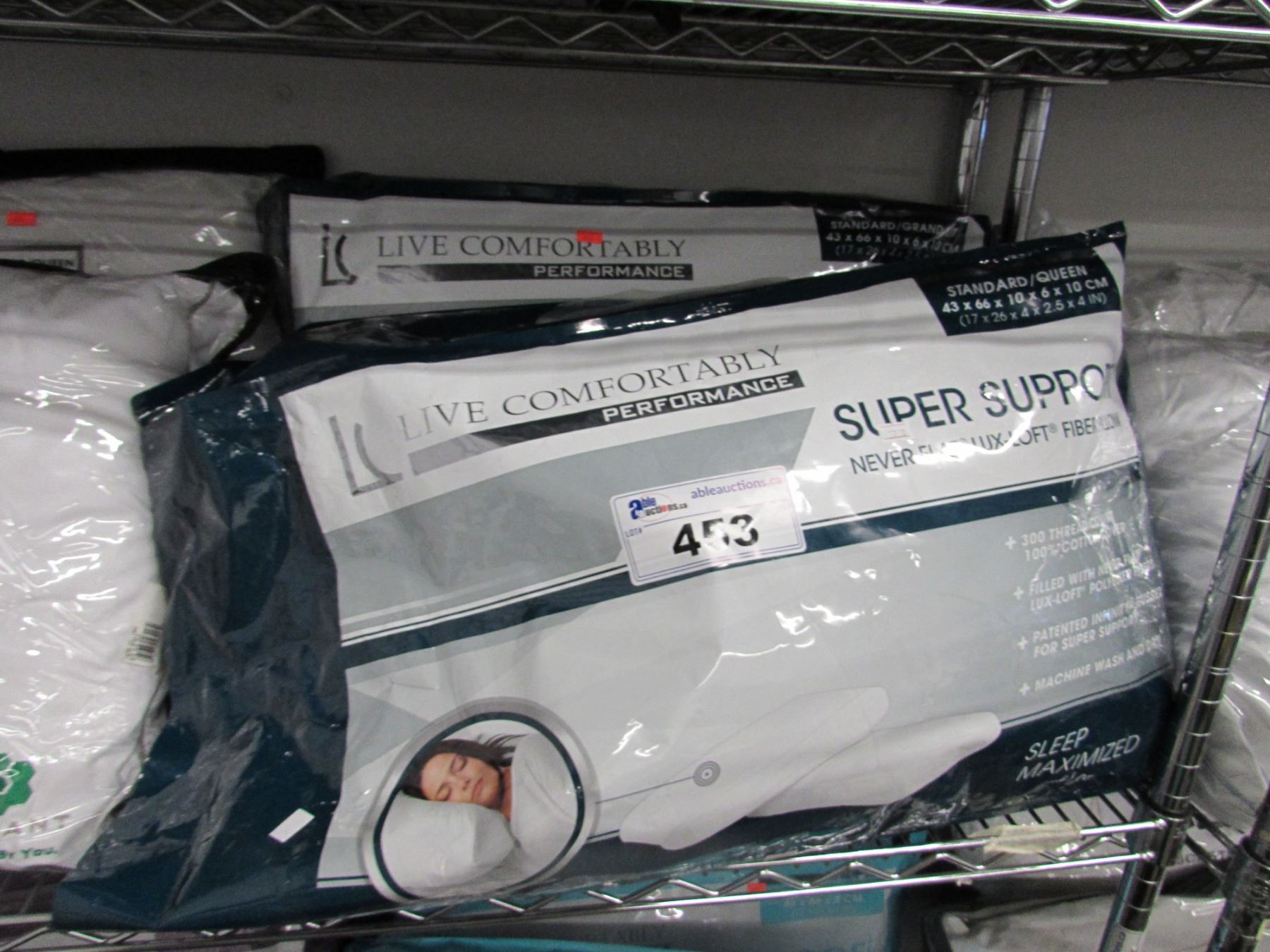 2 LIVE COMFORTABLY PERFORMANCE STANDARD QUEEN SUPER SUPPORT NEVER FLAT LUX LOFT FIBER PILLOWS